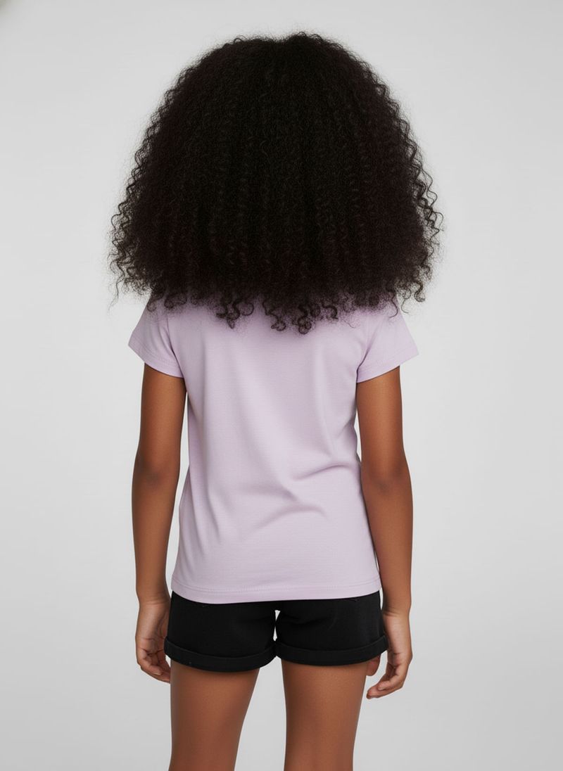 Combine a blusa lilás com shorts jeans para um visual casual e despojado, ou com uma saia estampada para um toque mais divertido. Nos pés, tênis confortáveis ou sandálias completam o look. Para um dia mais fresco, adicione um casaquinho leve. Explore a moda infantil Caedu.