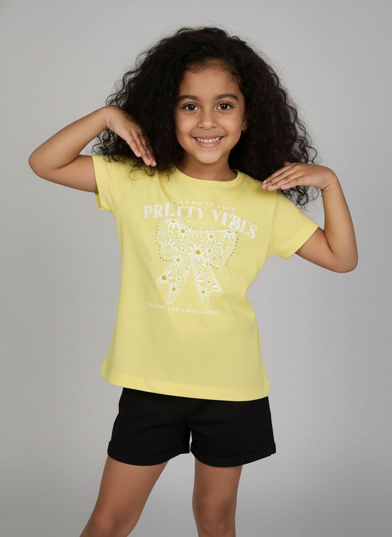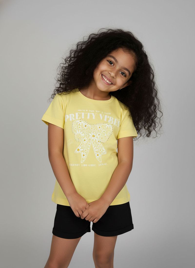 A Blusa Infantil Amarela de Algodão Caedu oferece o máximo conforto e estilo para as pequenas. Confeccionada em algodão macio, esta blusa infantil amarela possui delicados detalhes em strass, perfeita para compor looks cheios de charme e versatilidade na moda infantil.