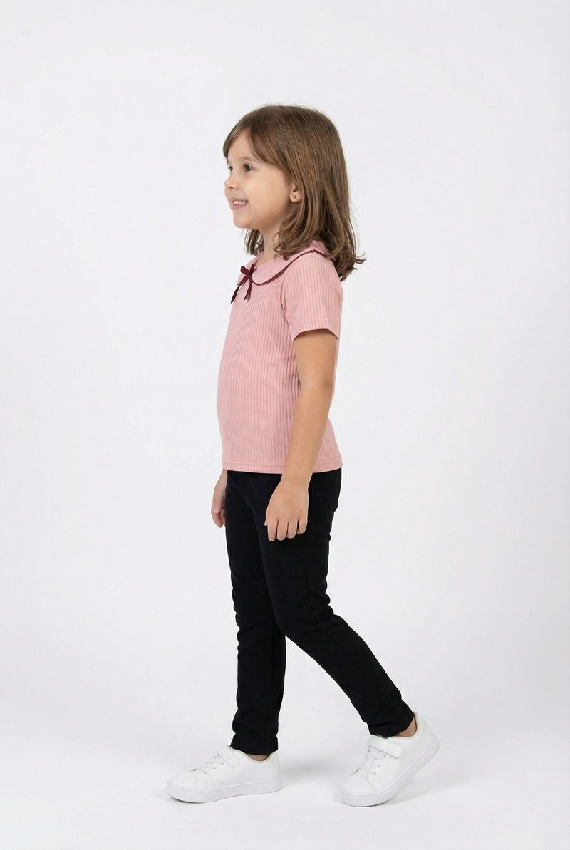 Combine a blusa rosa rosê com uma calça preta ou shorts jeans para um visual casual e moderno. Para um toque de elegância, use com uma saia rodada e sapatilhas. Complete o look com um cardigã leve ou jaqueta jeans em dias mais frescos, garantindo um estilo versátil e encantador para sua menina.