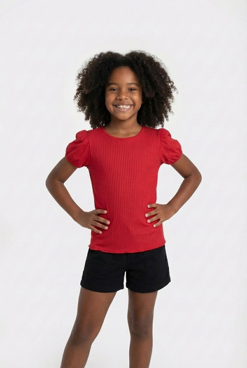 A Blusa Infantil Canelada Vermelha Caedu é a escolha perfeita para um visual encantador e confortável. Com seu tecido canelado e mangas bufantes em laise, esta roupa infantil oferece um toque de estilo único. Ideal para o dia a dia, garantindo bem-estar e um look vibrante.