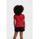 Combine a blusa vermelha com um shorts jeans para um visual despojado, ou uma saia estampada para um toque mais divertido. Para um look casual, aposte em um tênis branco ou sapatilha. Em dias mais frescos, uma jaqueta jeans leve complementa o conjunto, criando um estilo moderno e cheio de personalidade para sua pequena.