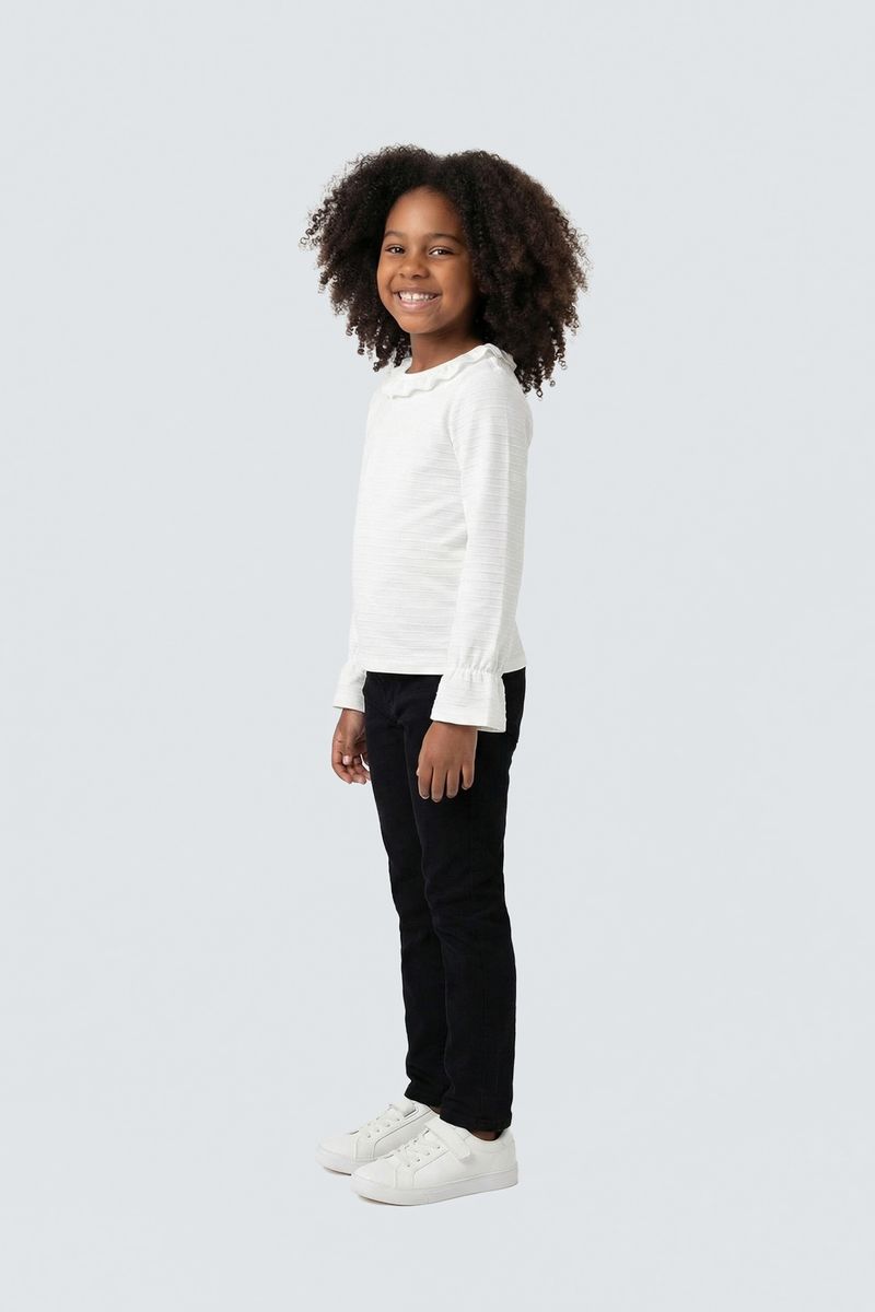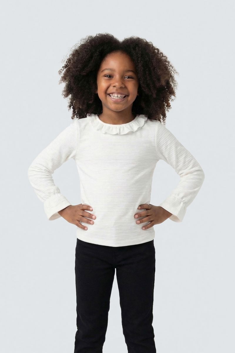 A Blusa Infantil Off White Anarruga Caedu oferece conforto e estilo para as pequenas. Com seu tecido anarruga texturizado, babado na gola e manga longa, é a roupa infantil perfeita para qualquer ocasião, garantindo um visual charmoso e moderno. Encontre a melhor moda infantil Caedu.
