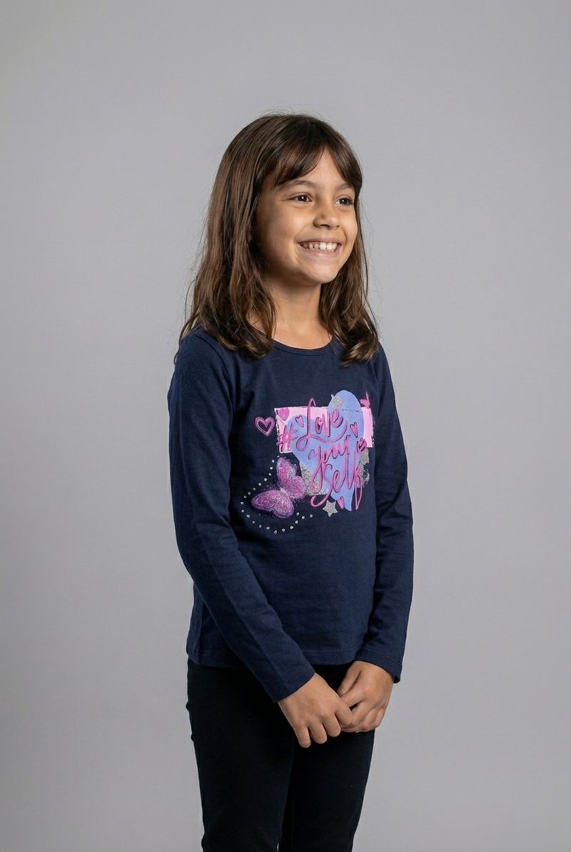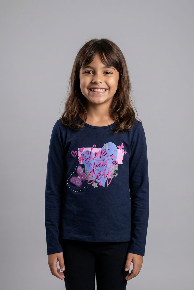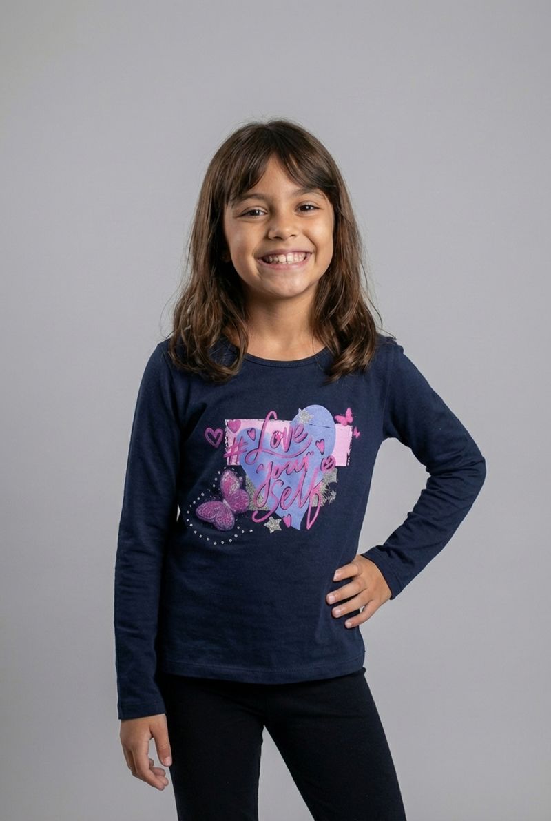 A Blusa Infantil Manga Longa Caedu é perfeita para inspirar as pequenas com sua mensagem #LoveYourself. Confeccionada em algodão macio, oferece conforto e estilo. O design vibrante com borboleta glitter e coração é um toque de magia para o dia a dia, ideal para as meninas que amam moda e se expressar.