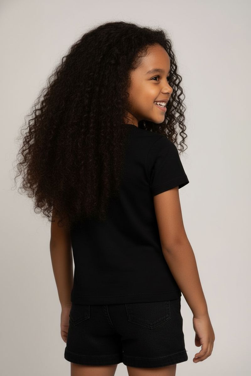 Combine esta blusa infantil com shorts jeans e tênis para um look casual e divertido. Para um toque mais arrumado, uma saia rodada e sapatilhas são ideais. Adicione um laço no cabelo para complementar o visual e criar um estilo único e cheio de charme para as pequenas.