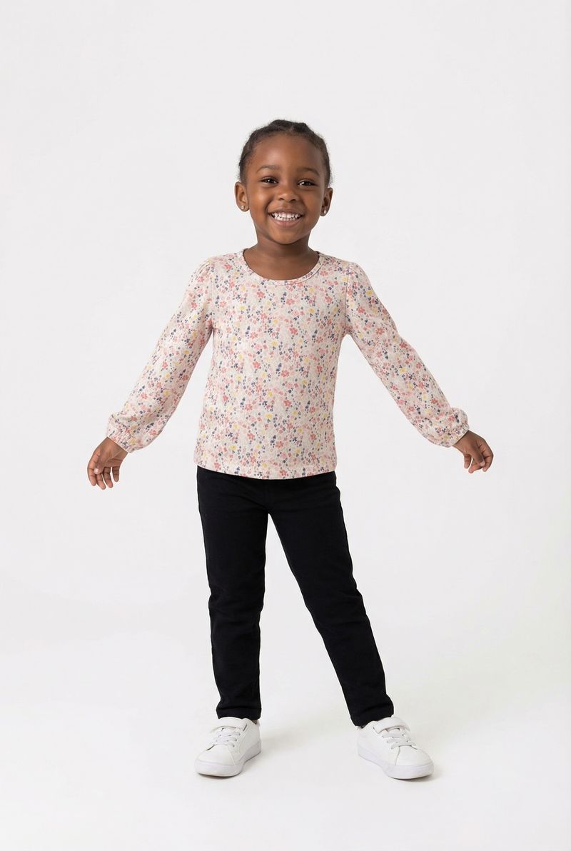 A Blusa Infantil Floral Delicada Off White Caedu une conforto e estilo. Feita em SUPPLEX, oferece toque suave e leveza. Com estampa floral e mangas bufantes, é a roupa perfeita para looks charmosos, refletindo a moda Caedu.