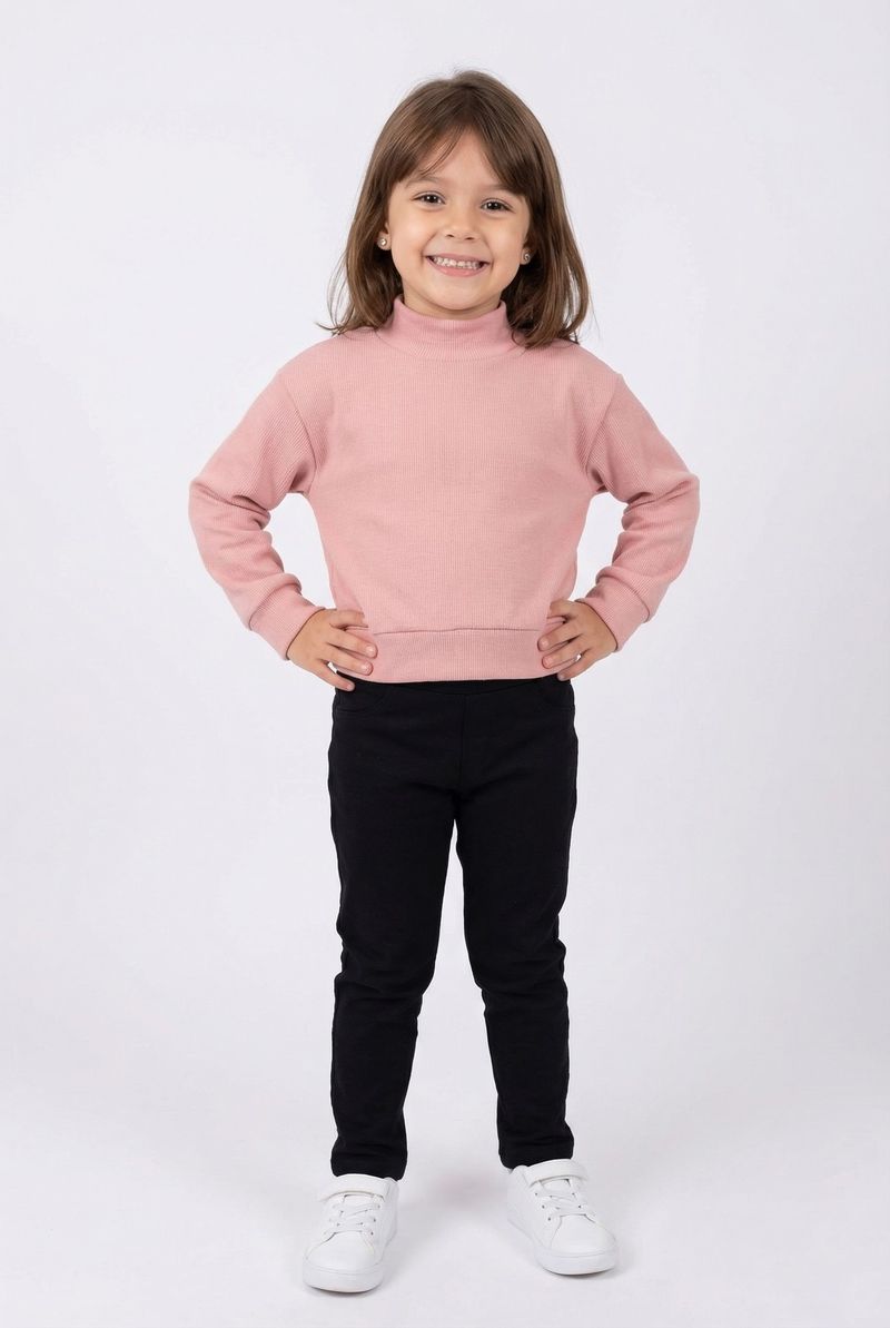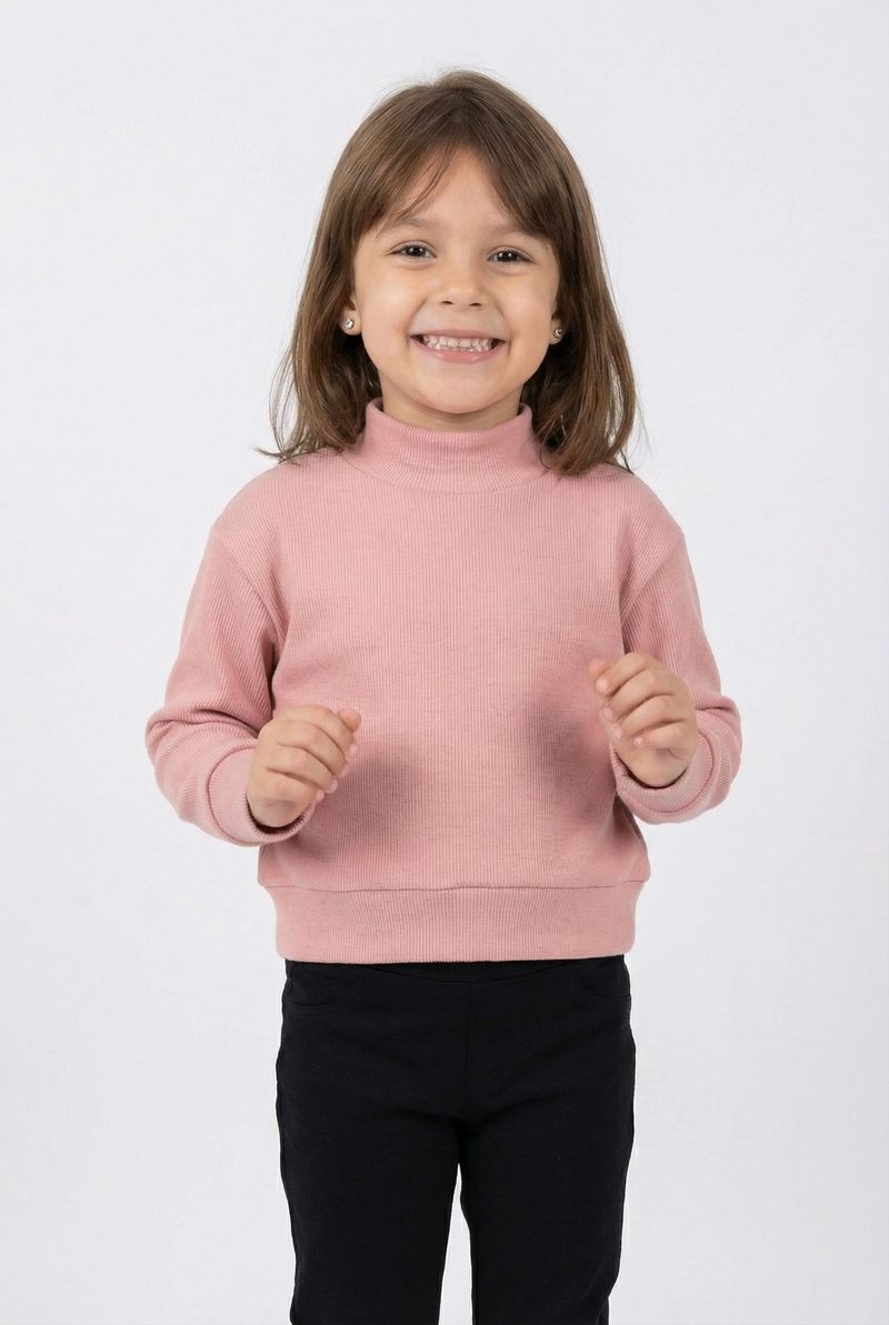 A Blusa Infantil Gola Alta Canelada Rosa Caedu é a escolha perfeita para um look charmoso e confortável. Confeccionada em ribana macia, oferece aconchego e liberdade. Seu design canelado e a gola alta garantem estilo e proteção, ideal para a moda infantil.