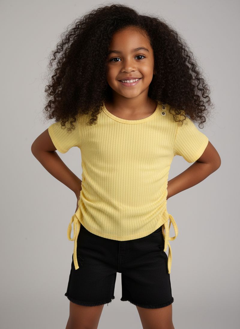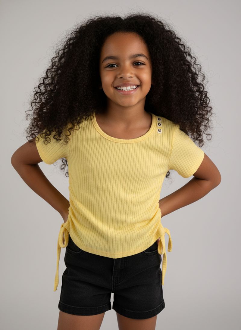 A Blusa Infantil Rib Colisse Amarela Caedu oferece o máximo conforto e estilo para as pequenas. Feita em ribana com 50% algodão e 50% poliéster, garante maciez e durabilidade. Perfeita para o dia a dia, é uma roupa infantil versátil e cheia de vida.