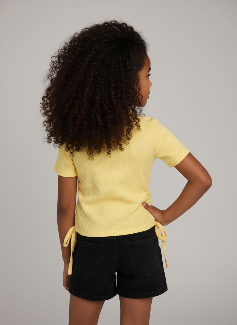 Combine esta blusa infantil amarela com um shorts jeans e tênis para um look casual e divertido. Para um estilo mais despojado, experimente com uma saia estampada e sandálias. Em dias mais frescos, adicione um casaco leve. Peça chave para criar visuais encantadores e cheios de personalidade.