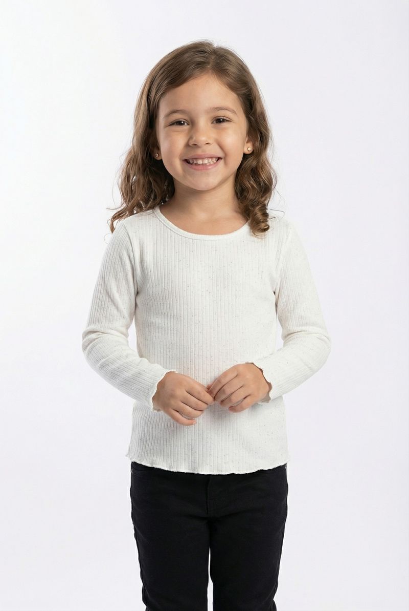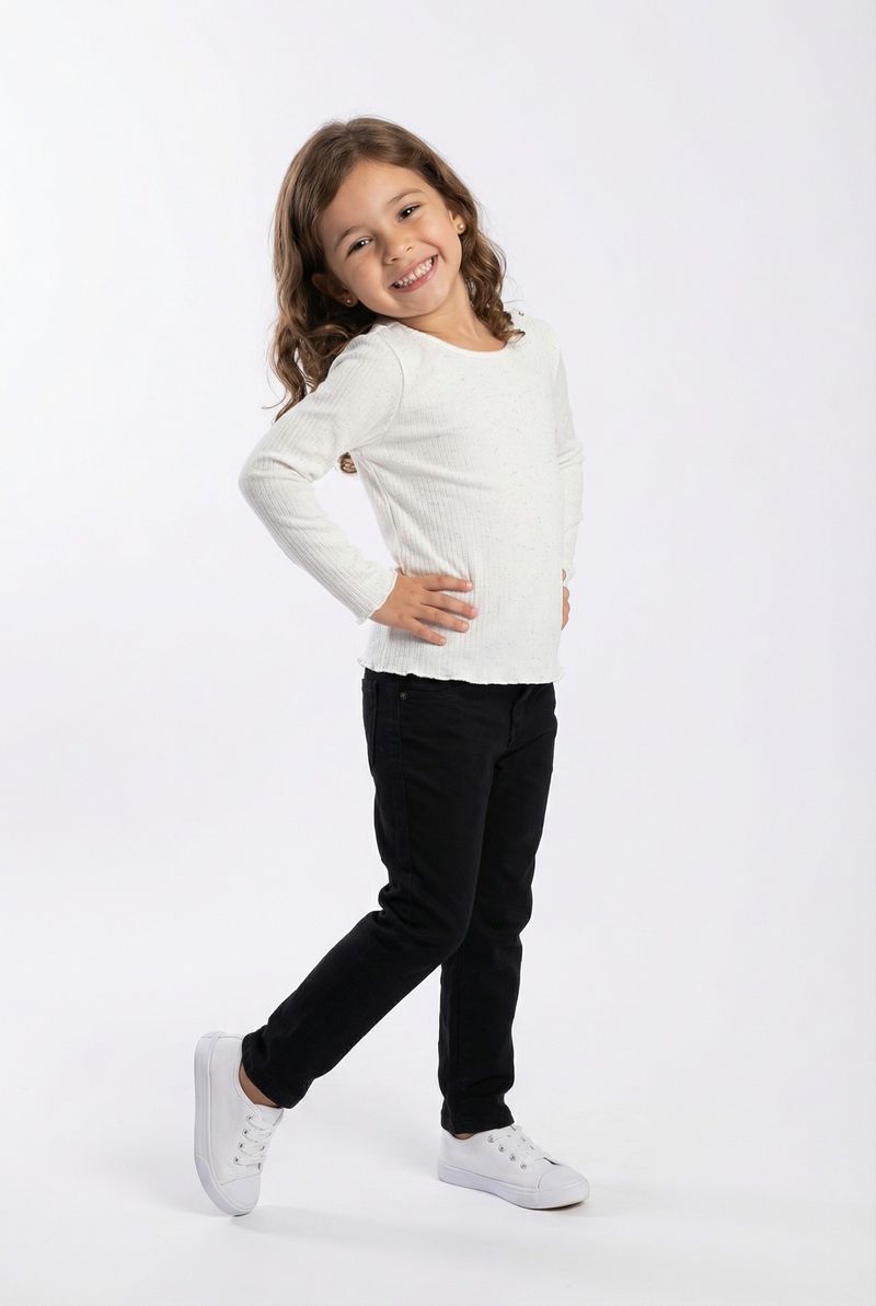 A Blusa Infantil Canelada Off White com Toque de Glitter Caedu é a escolha perfeita para um visual charmoso e confortável. Com sua textura canelada e delicados pontos de glitter, esta roupa infantil oferece um toque de brilho sutil. Ideal para compor looks modernos e cheios de estilo para as pequenas fashionistas.