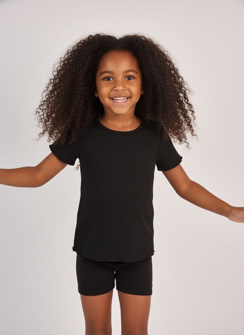 A Blusa Infantil Canelada Manga Curta Preta Caedu oferece conforto e estilo para o dia a dia. Confeccionada em ribana, esta blusa preta canelada com decote redondo e mangas curtas é perfeita para criar looks versáteis e cheios de personalidade. Uma peça essencial para a moda infantil.