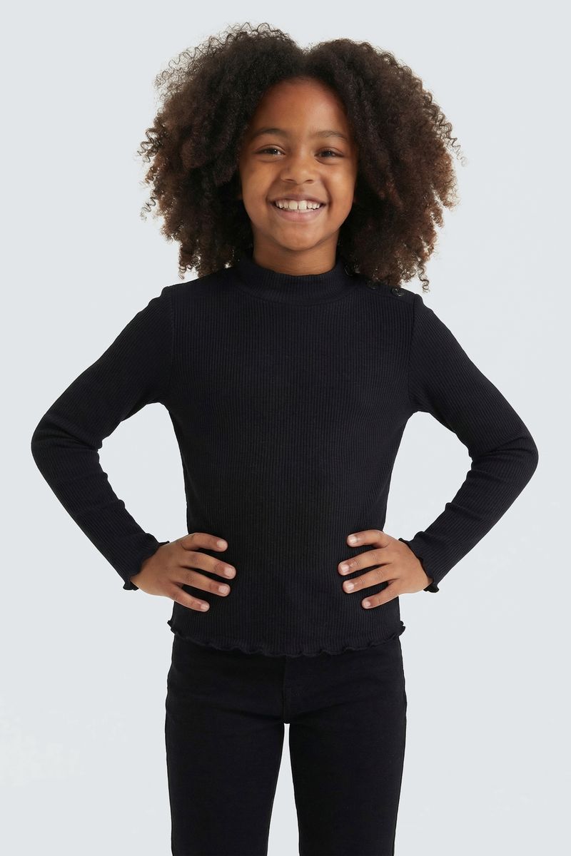 A Blusa Infantil Canelada Gola Alta Preta Caedu oferece conforto e estilo para as pequenas. Com design canelado, gola alta e charmosos botões no ombro, esta roupa é perfeita para criar looks modernos e aconchegantes. Uma peça essencial da moda infantil Caedu.