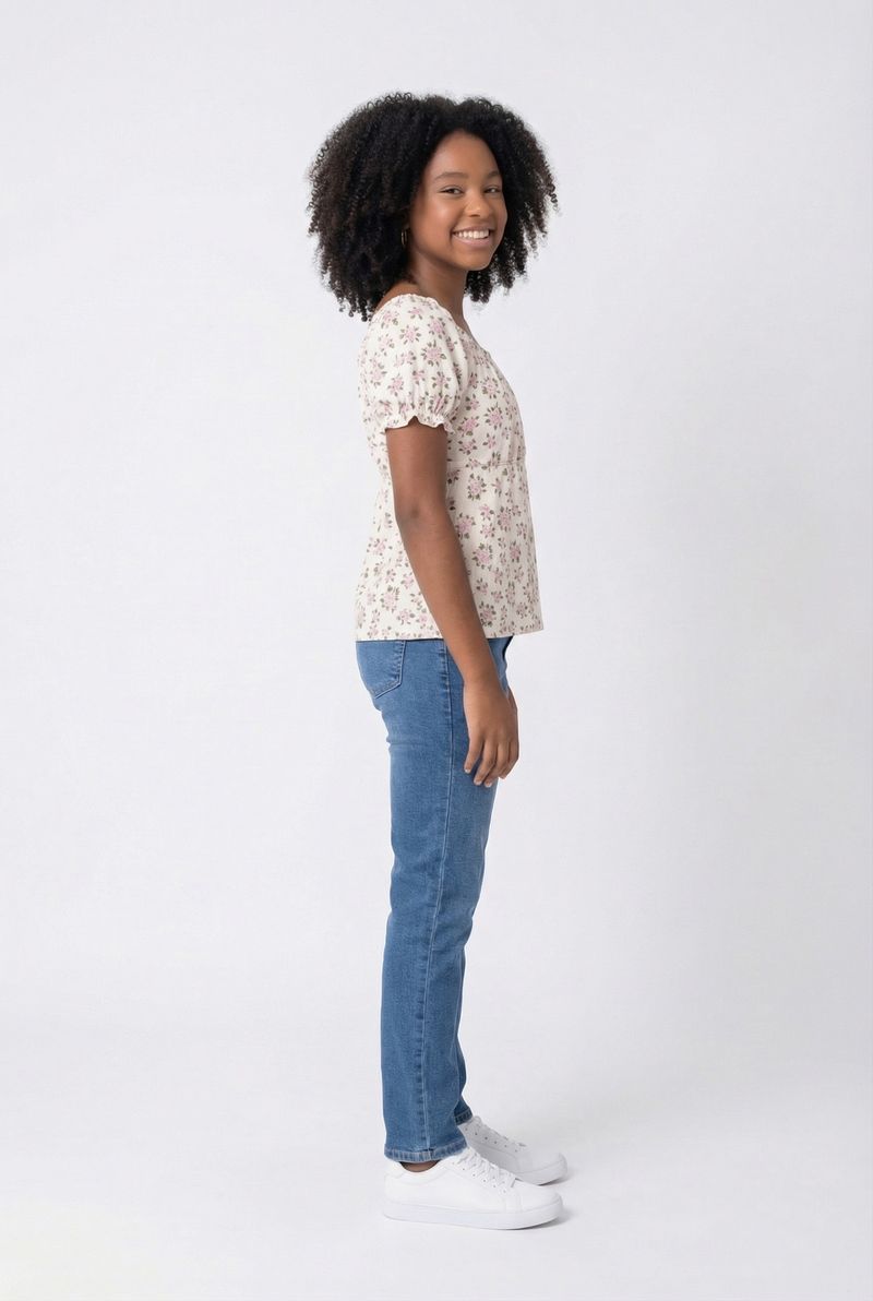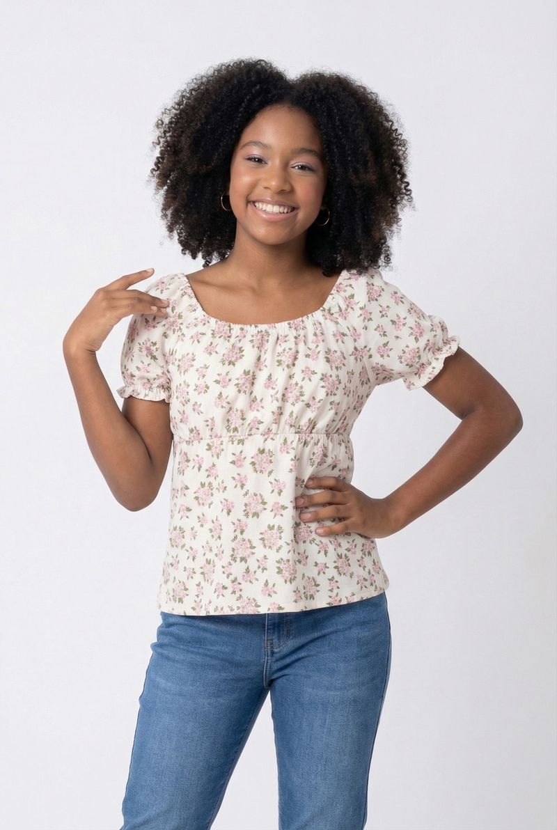 A Blusa Infantil Floral Off White Caedu é ideal para um visual encantador. Em ANARUGA, oferece conforto e leveza. Design floral, mangas bufantes e decote quadrado trazem moda e sofisticação. Perfeita para as pequenas fashionistas.