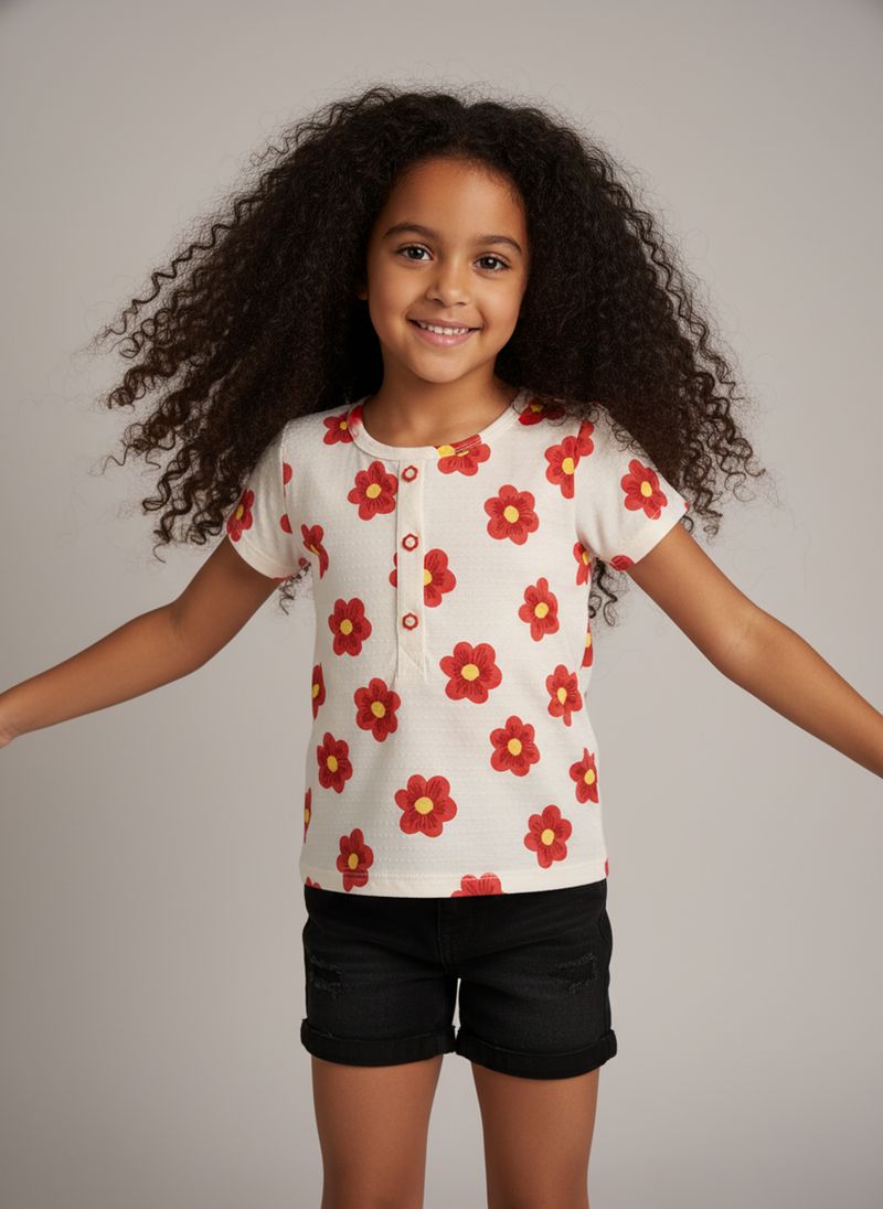 Descubra a Blusa Infantil Canelada Caedu, perfeita para as pequenas fashionistas. Com estampa floral vermelha vibrante e botões charmosos, oferece conforto e um toque de alegria. Feita em ribana, é ideal para o dia a dia, garantindo liberdade e estilo em cada movimento.