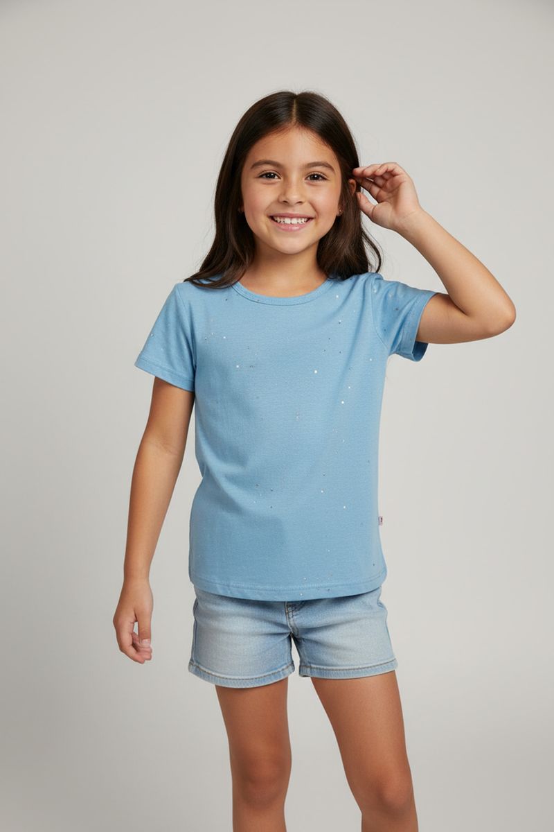 A Blusa Infantil Azul Celeste Brilhante com Glitter Caedu traz conforto e estilo. Em meia malha, oferece leveza. O brilho do glitter e o azul celeste destacam esta blusa infantil, ideal para a moda caedu.