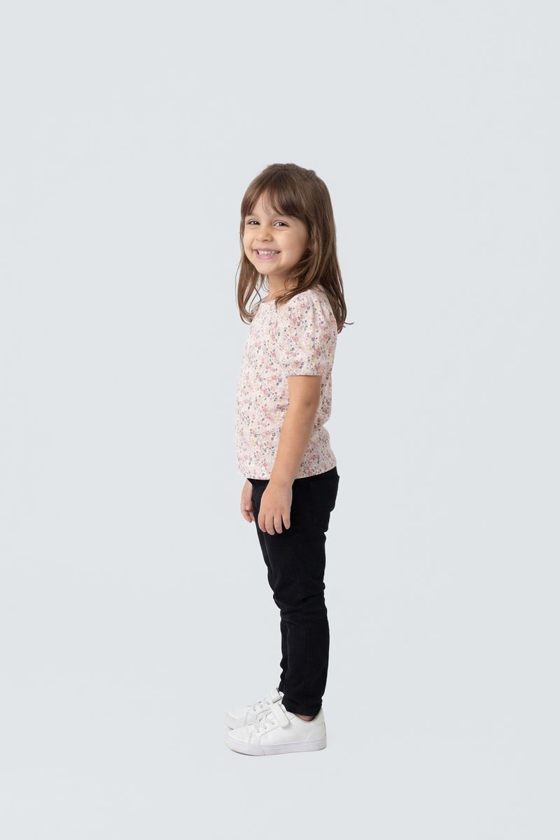Combine a Blusa Infantil Floral Delicada com uma calça jeans para um look casual, ou uma saia preta para um visual mais arrumado. Nos pés, tênis brancos ou sapatilhas completam o estilo. Para dias mais frescos, um cardigã leve pode ser uma ótima sobreposição, adicionando charme e conforto.