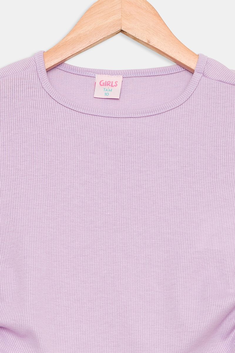 A Blusa Infantil Lilás Caedu é a roupa perfeita para looks modernos e confortáveis. Com design versátil, textura canelada e franzidos ajustáveis nas laterais, esta peça da moda juvenil oferece estilo e bem-estar. Essencial para o dia a dia.