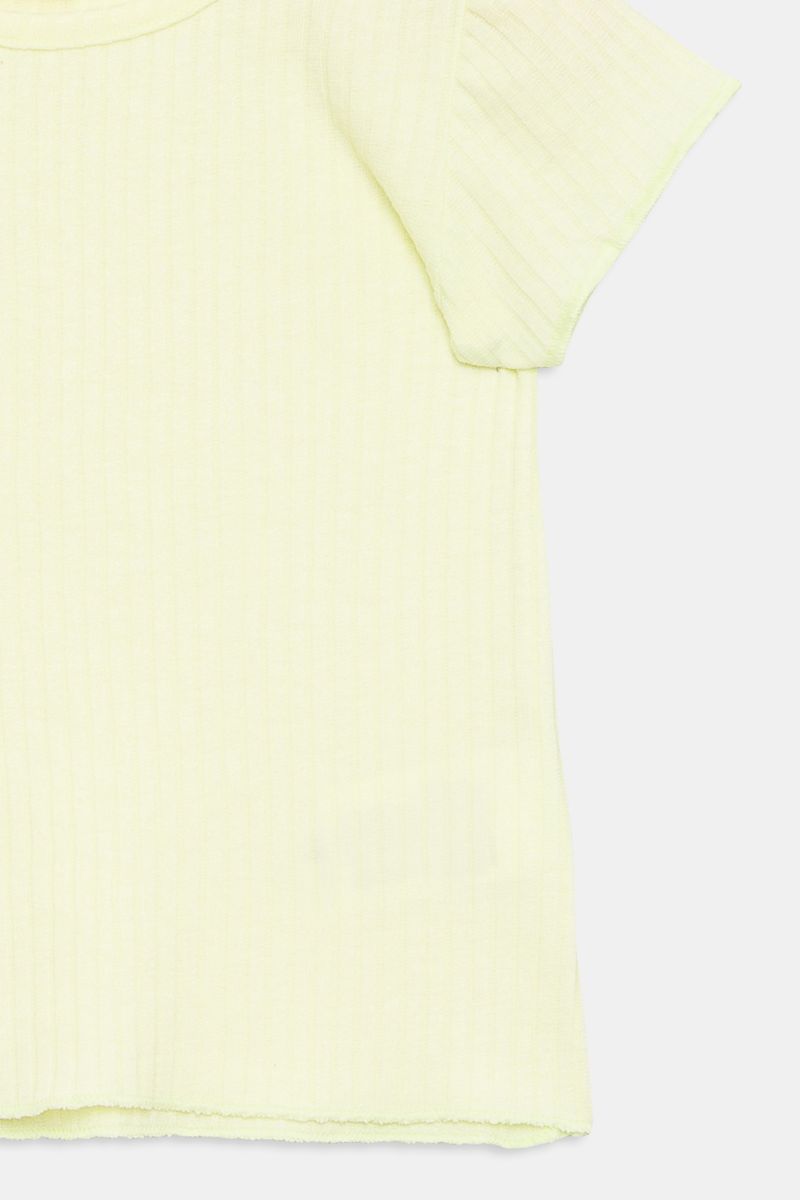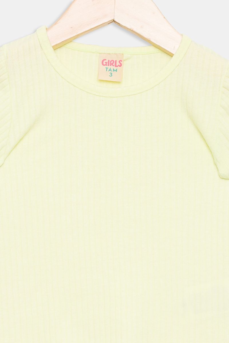 Blusa infantil amarela neon em ribana, cheia de energia e conforto, ideal para os dias mais quentes.