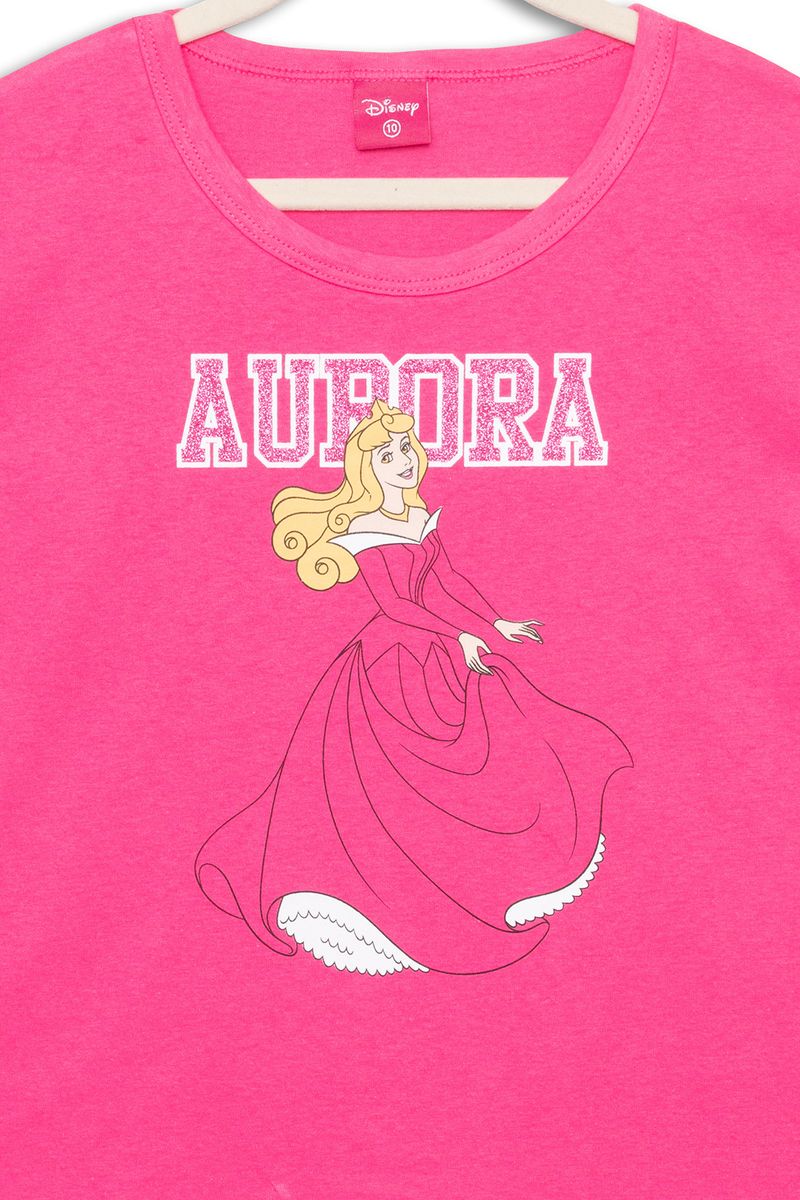 Blusa infantil Menina rosa com estampa de princesa Aurora.