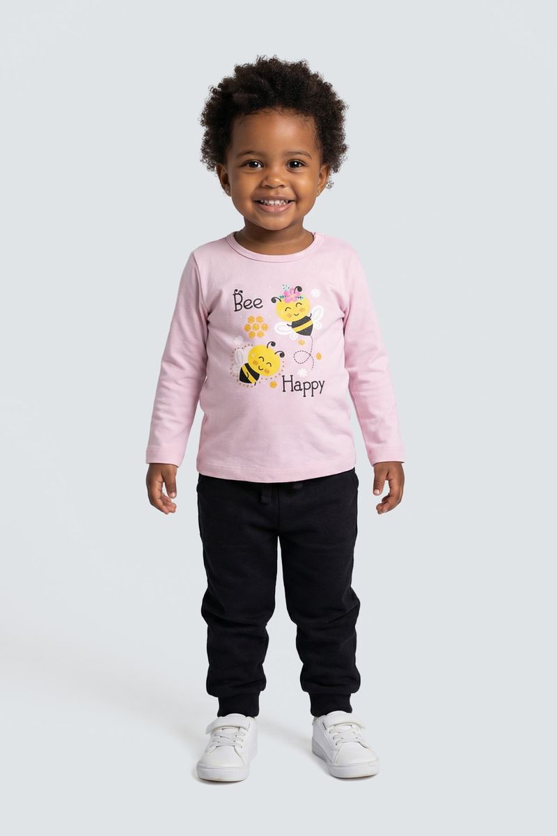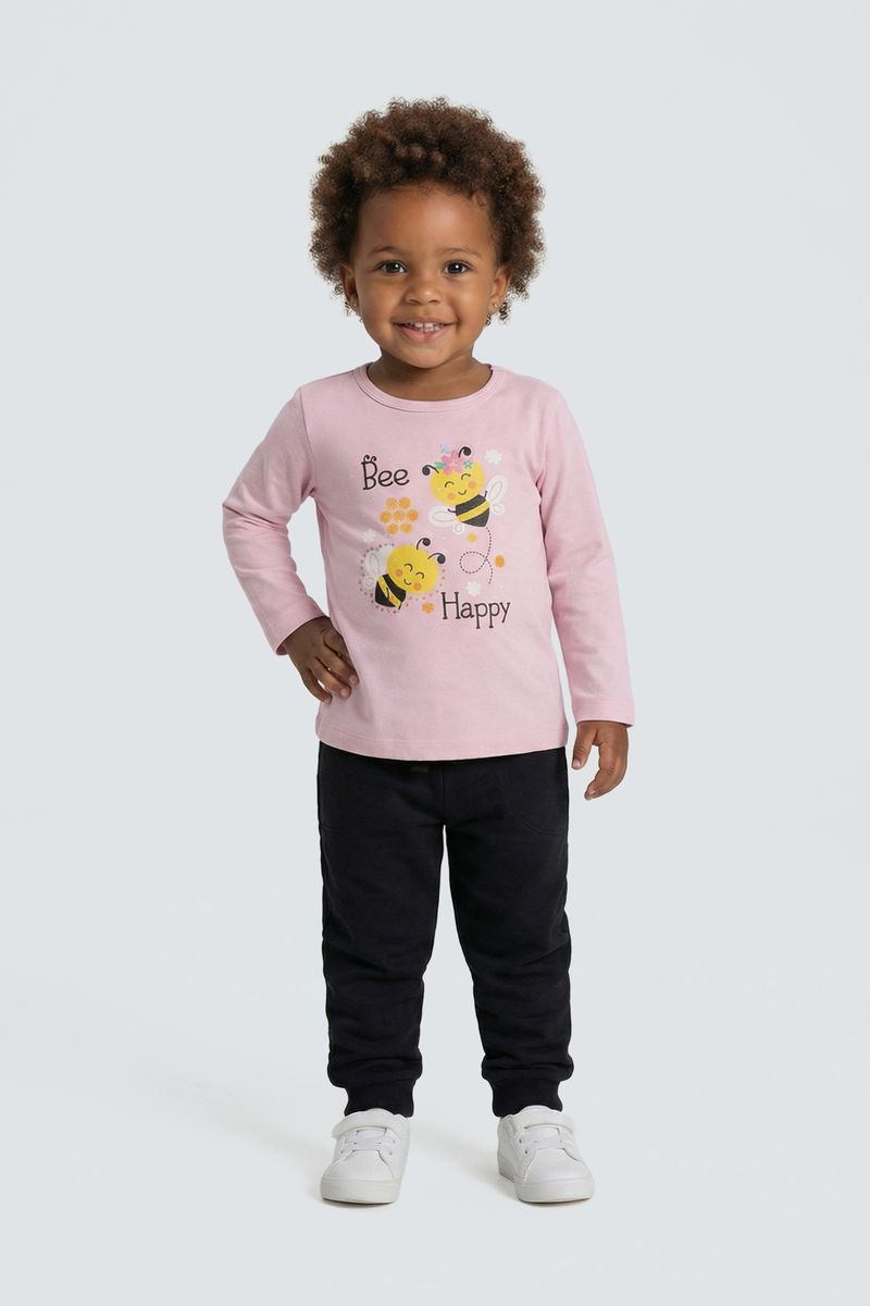 Vista sua pequena com a Blusa Infantil Manga Longa 'Bee Happy' da Caedu, perfeita para um dia cheio de alegria. Confeccionada em COTTON macio, oferece conforto e liberdade. Seu design rosa claro com estampa de abelhinhas e a frase "Bee Happy" traz um toque divertido e inspirador para a moda infantil.