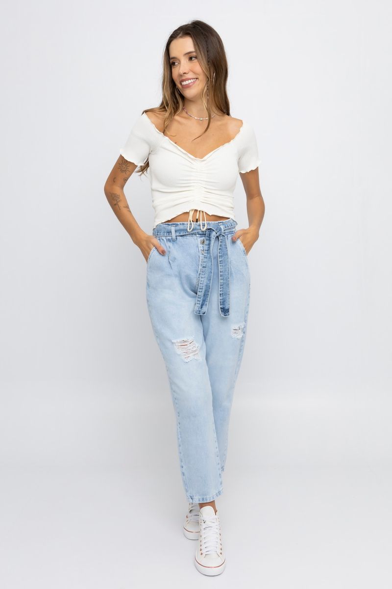 Blusa feminina lisa, modelo cropped. Possui manga curta, decote ombro a ombro e franzido no entremeio com tiras para amarração.