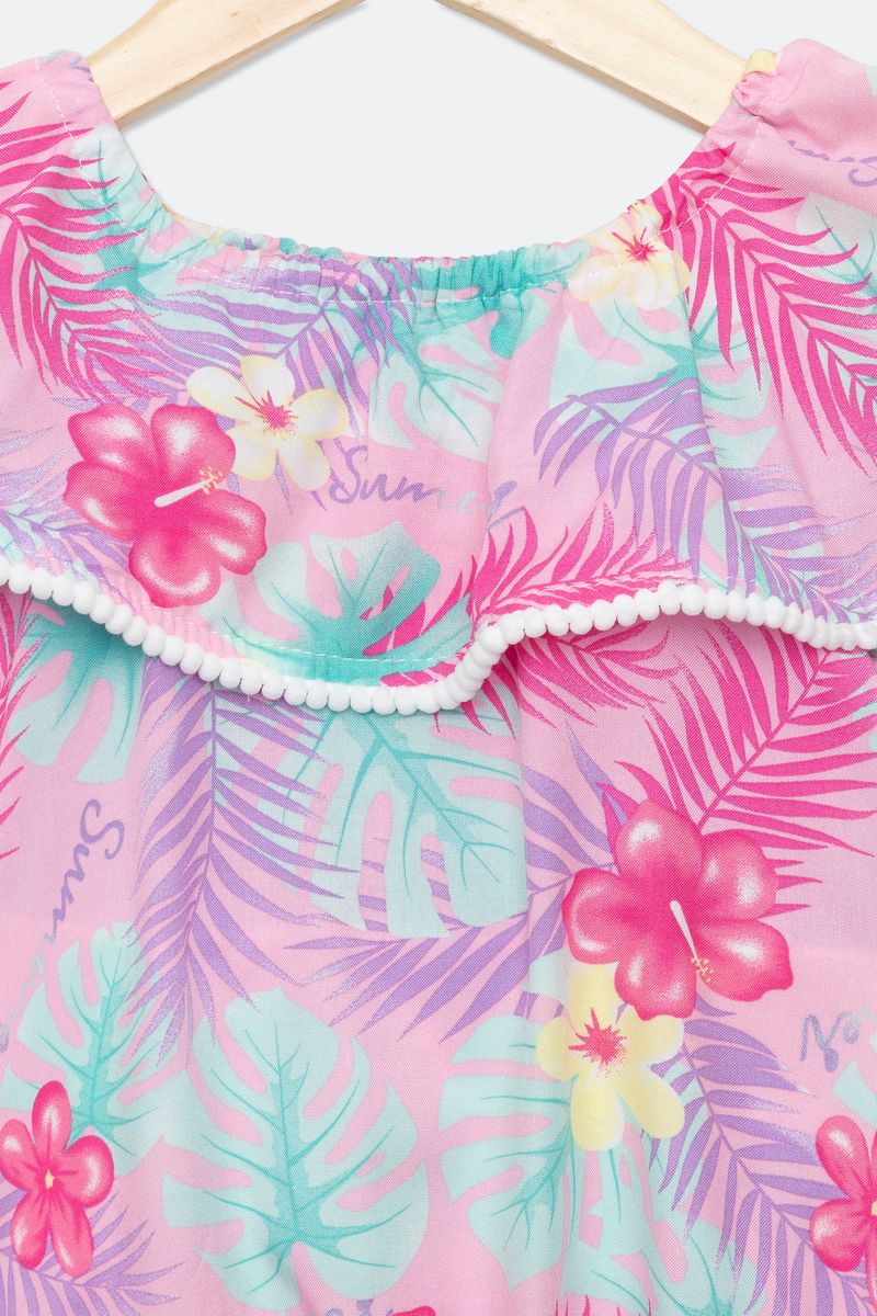 Blusa Infantil Menina Tam 4 a 8 Manga Curta Estampado