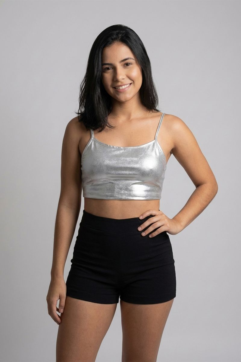 Este Top Cropped Feminino Prata Metálico é perfeito para eventos noturnos, festas, baladas, shows ou jantares especiais. Sua versatilidade permite criar looks impactantes para momentos que pedem um toque de glamour e moda.