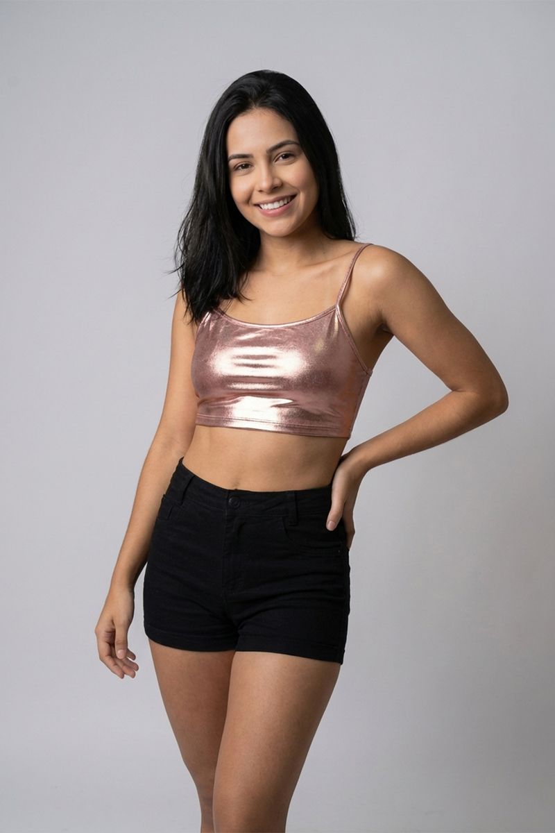 Ideal para eventos noturnos, festas, encontros casuais ou para adicionar um toque de glamour ao seu dia a dia. A Blusa Cropped Rosê Metálica é versátil para diversas ocasiões, garantindo que você se destaque com muito estilo.