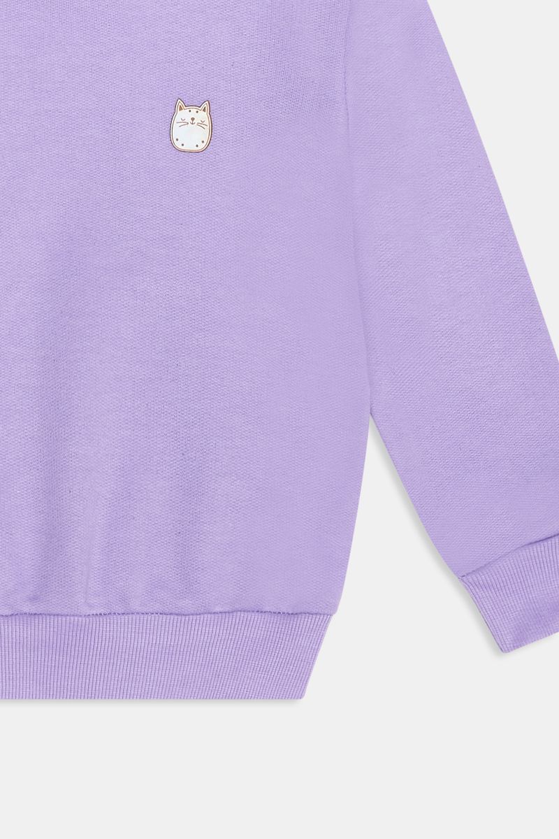 Moletom Infantil Menina Lilás Gatinho Holográfico