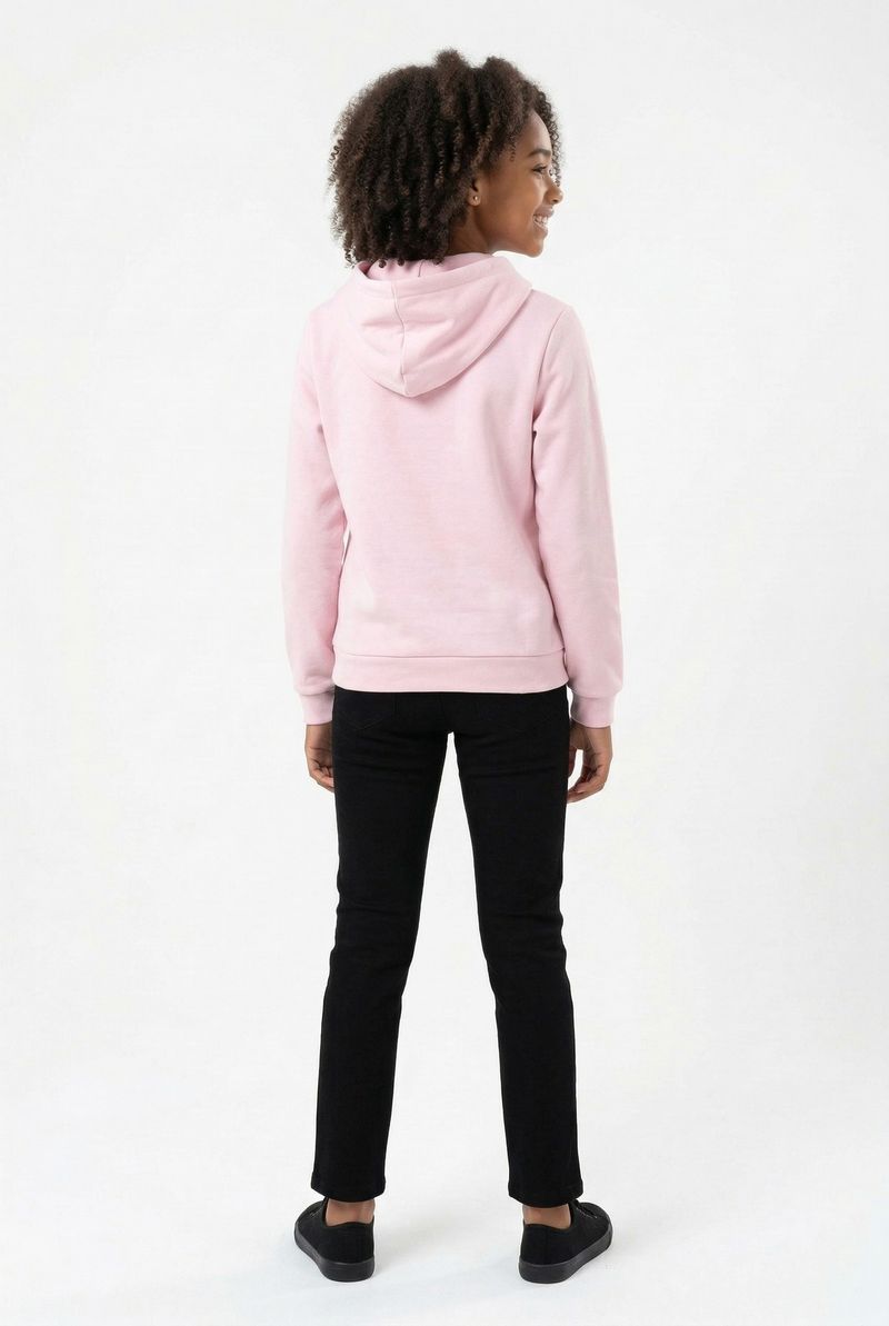 Combine o Moletom Juvenil Rosa com uma calça jeans para um visual casual e despojado, ou com uma legging preta para mais conforto. Para os pés, tênis brancos ou pretos complementam o look. Adicione acessórios simples para um toque final de moda.