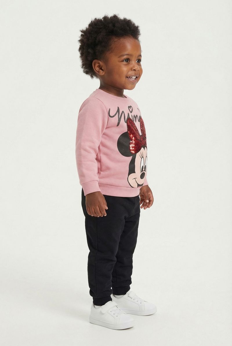 O Moletom Infantil Minnie Rosa com Laço de Paetê Vermelho Caedu, da nova coleção de outono inverno, é a roupa ideal. Em 100% algodão com felpa, oferece conforto e maciez. A estampa da Minnie com laço de paetê garante um visual divertido e cheio de estilo para sua pequena.