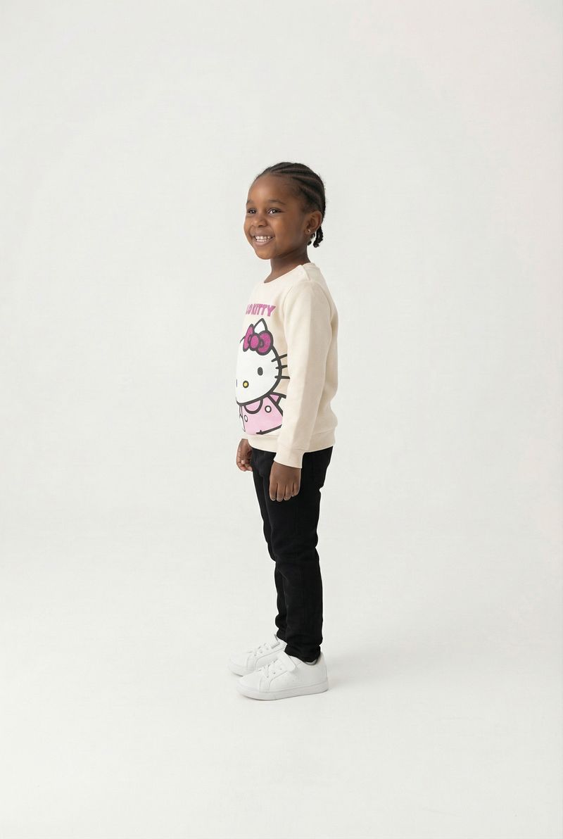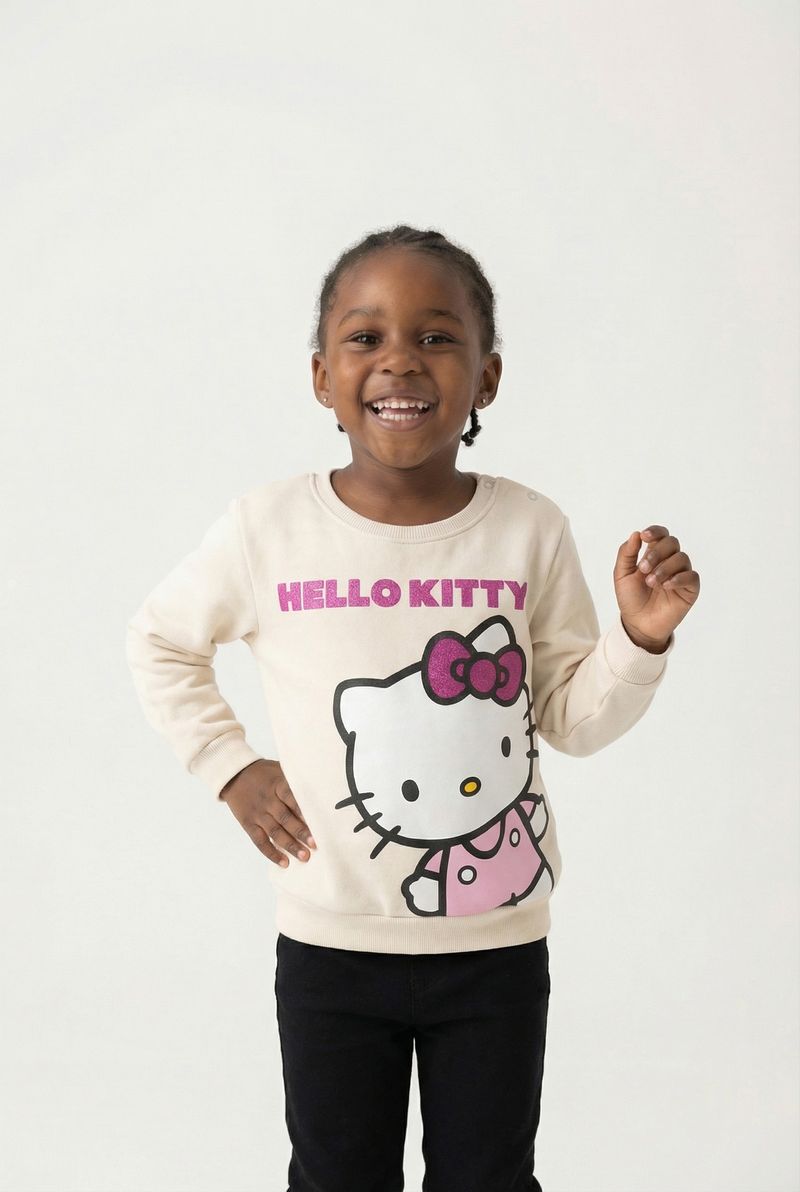 O Moletom Infantil Hello Kitty Off White Caedu une estilo e conforto para sua pequena. Confeccionado em moletom com felpa macia, garante um toque suave na pele. A gola redonda e a adorável estampa da Hello Kitty fazem desta roupa infantil um item indispensável no guarda-roupa. Prático, possui botões de pressão no ombro para facilitar o vestir, ideal para o dia a dia da moda infantil.