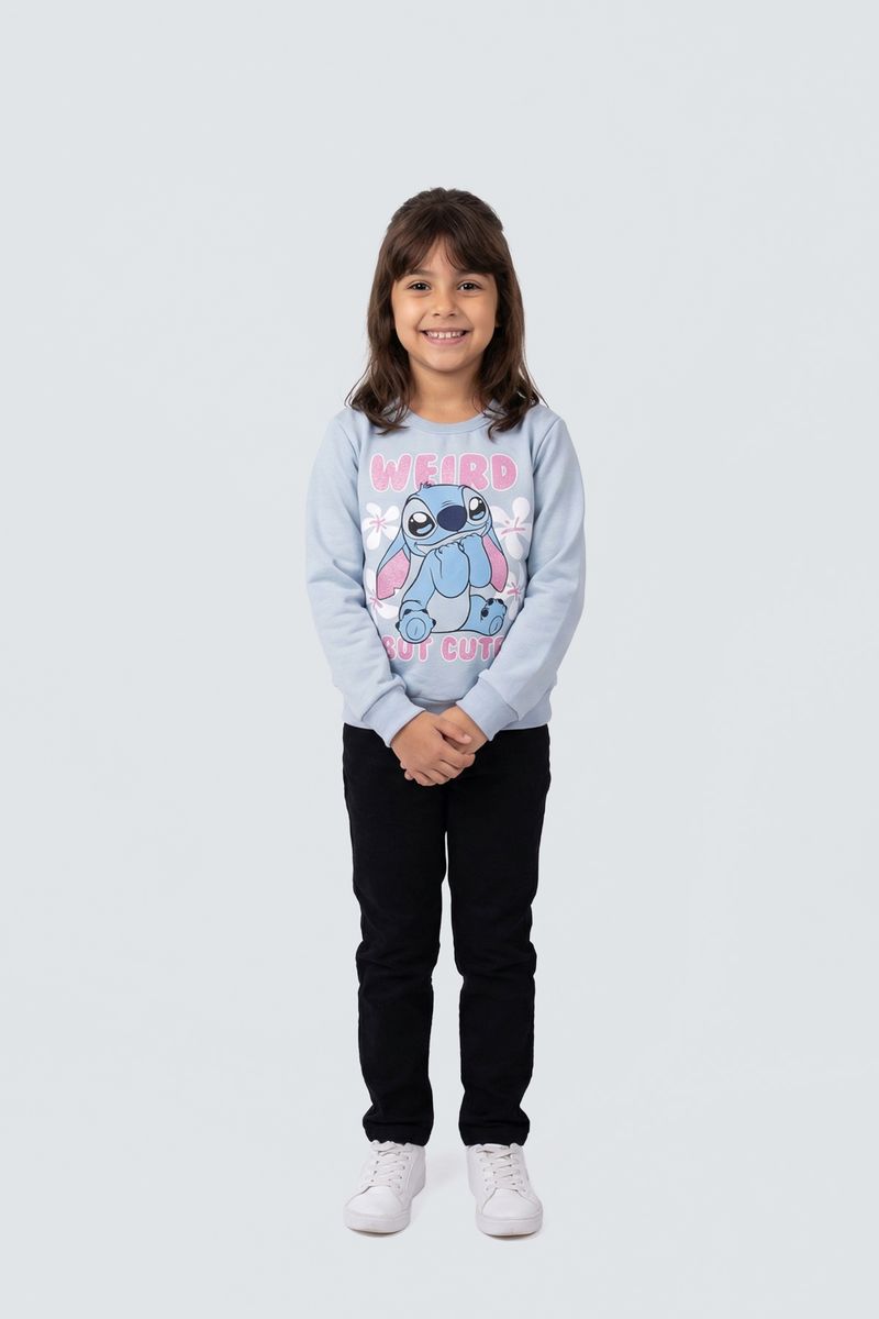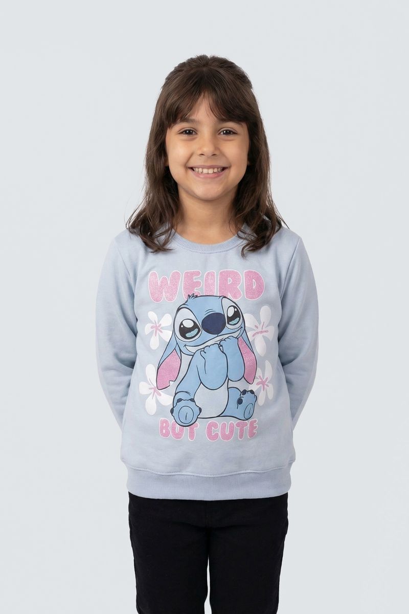 O Moletom Infantil Stitch 'Weird But Cute' Caedu oferece conforto e estilo. Em azul claro, com estampa do Stitch e moletom com felpa, é a peça ideal para a moda infantil, garantindo um visual alegre e divertido.