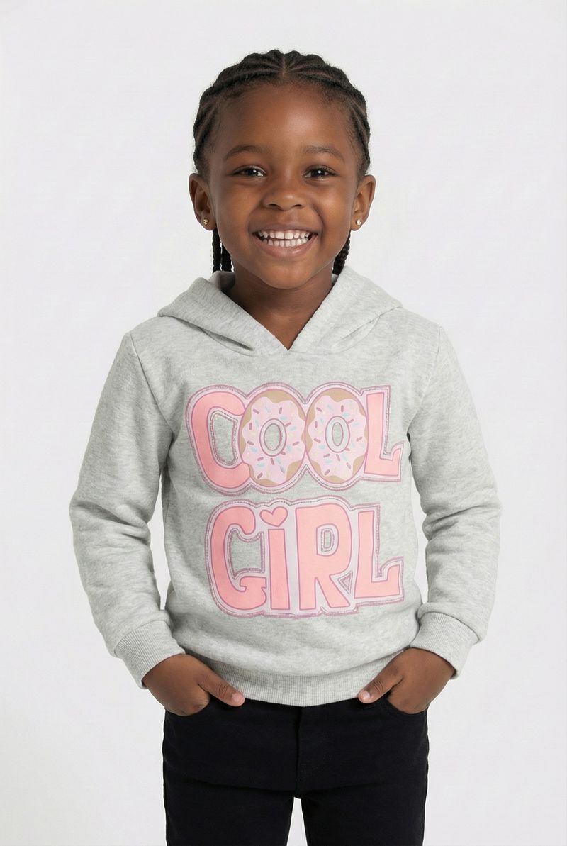 O Moletom Infantil Menina Cool Girl Donuts Mescla com Capuz Caedu oferece conforto e estilo. Composição 100% poliéster com felpa, capuz e estampa "COOL GIRL" com donuts. Uma roupa versátil para o dia a dia.