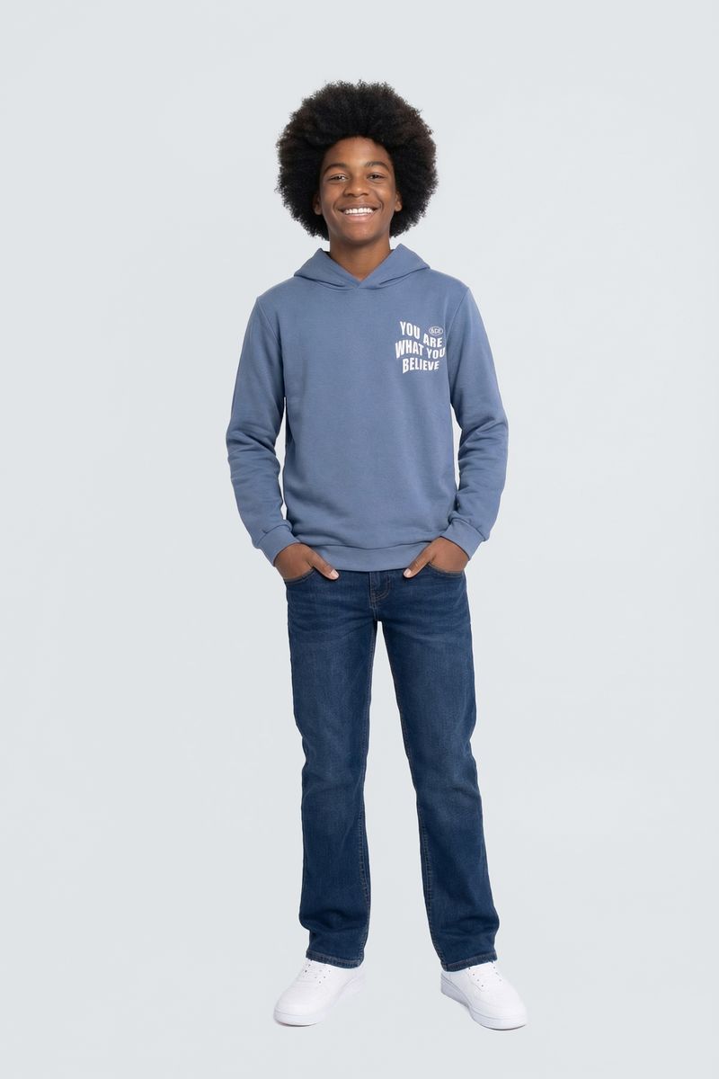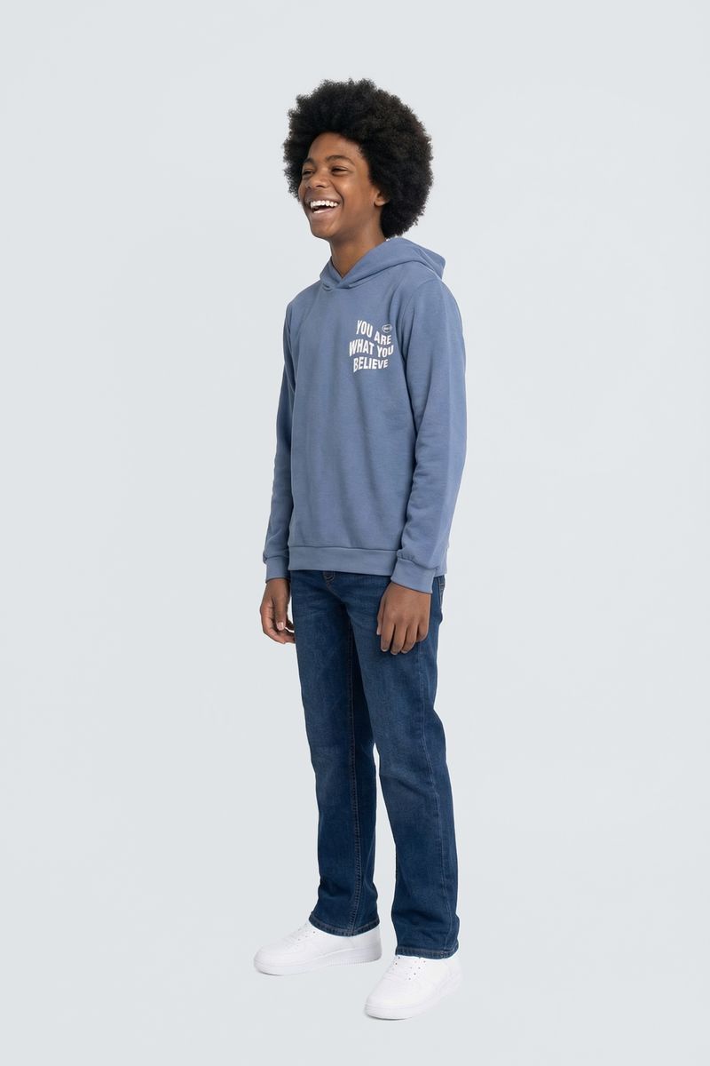 O Blusão de Moletom Juvenil Caedu oferece conforto e estilo para o dia a dia. Feito em moletom com felpa, possui capuz e uma estampa inspiradora 'YOU ARE WHAT YOU BELIEVE'. Uma roupa perfeita para expressar sua personalidade com a moda Caedu.