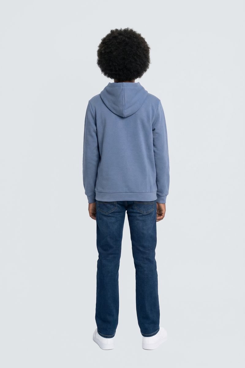 Detalhes: Capuz, estampa frontal, punhos e barra canelados