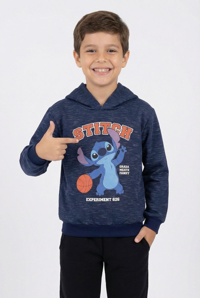 Detalhes: Estampa do Stitch com basquete, capuz