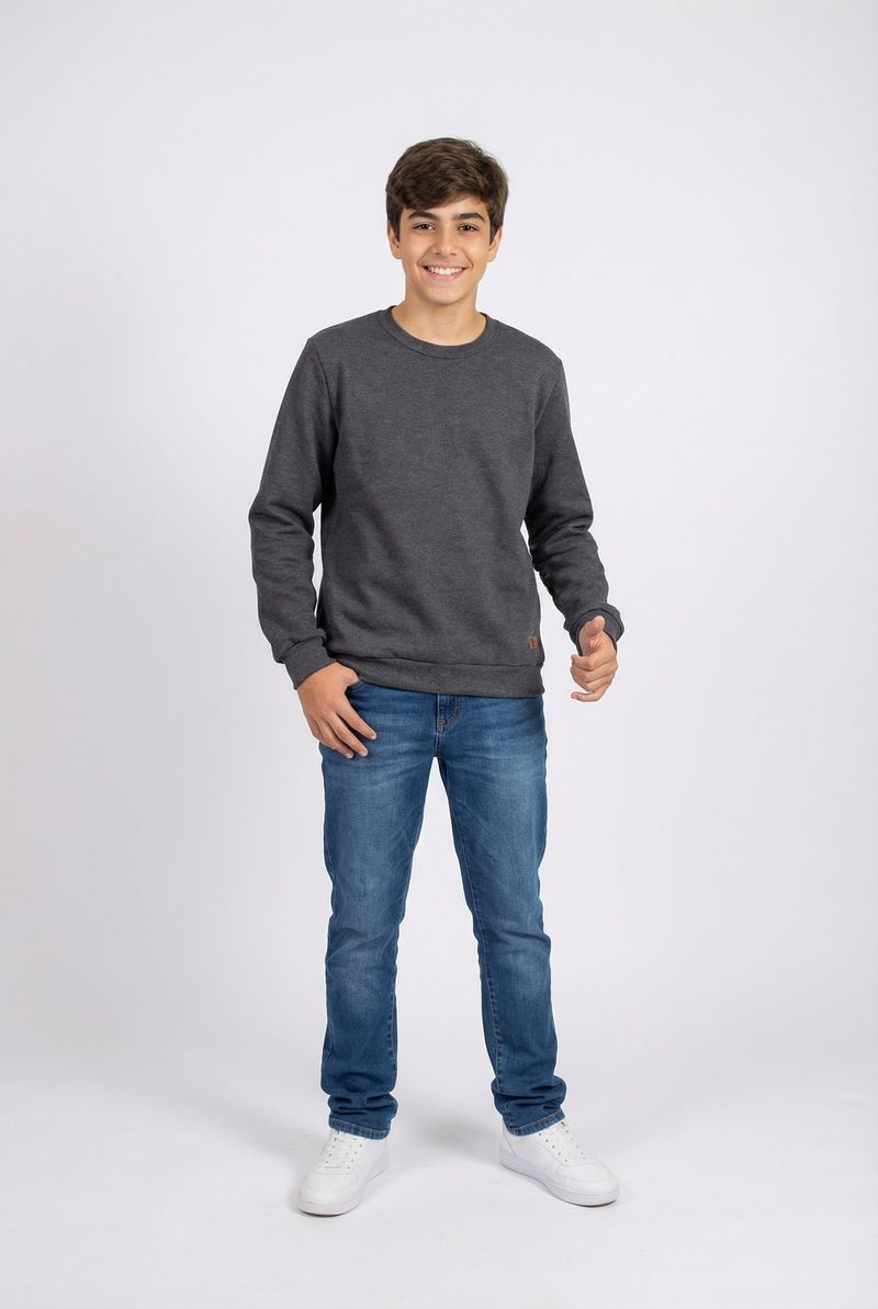 O Moletom Juvenil Básico Liso Caedu em cinza chumbo é a escolha perfeita para um visual confortável e versátil. Confeccionado em 100% poliéster com moletom felpado, oferece maciez e durabilidade para o dia a dia, ideal para momentos de lazer e diversão.