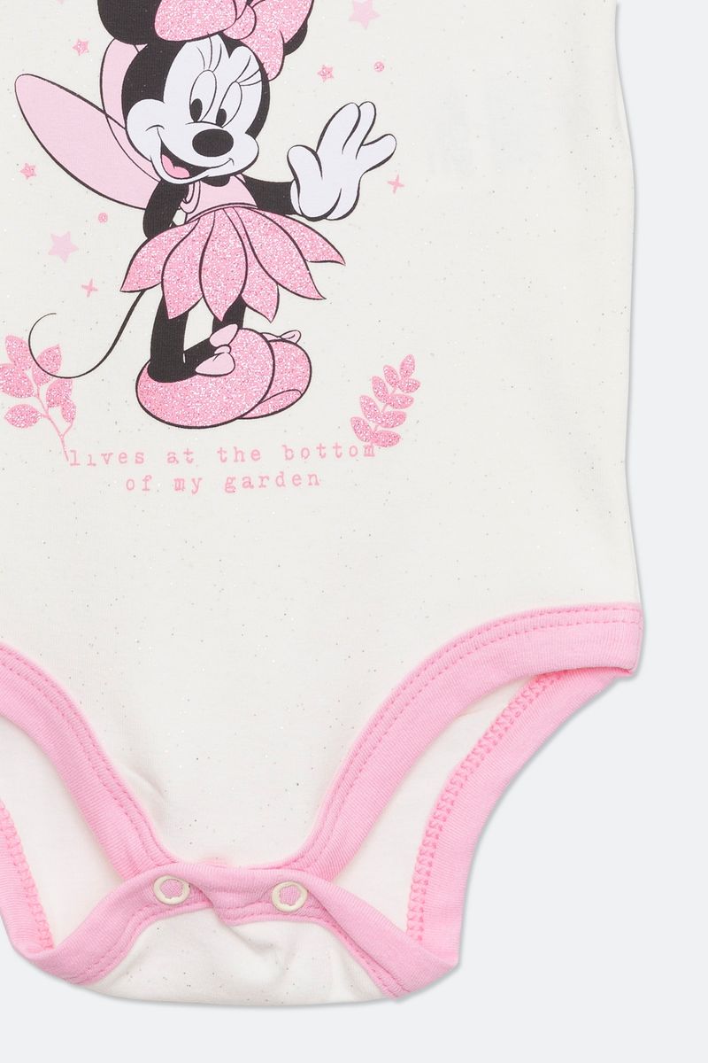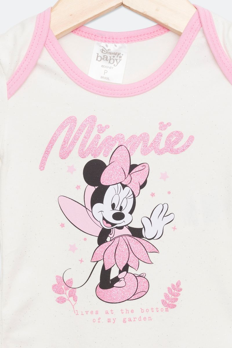 Body Infantil Bebê com Estampa Minnie Off White e Rosa Tam P ao G