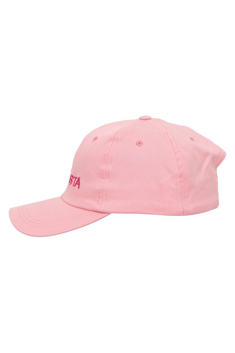 Boné feminino aba curta na cor rosa claro com bordado frontal.