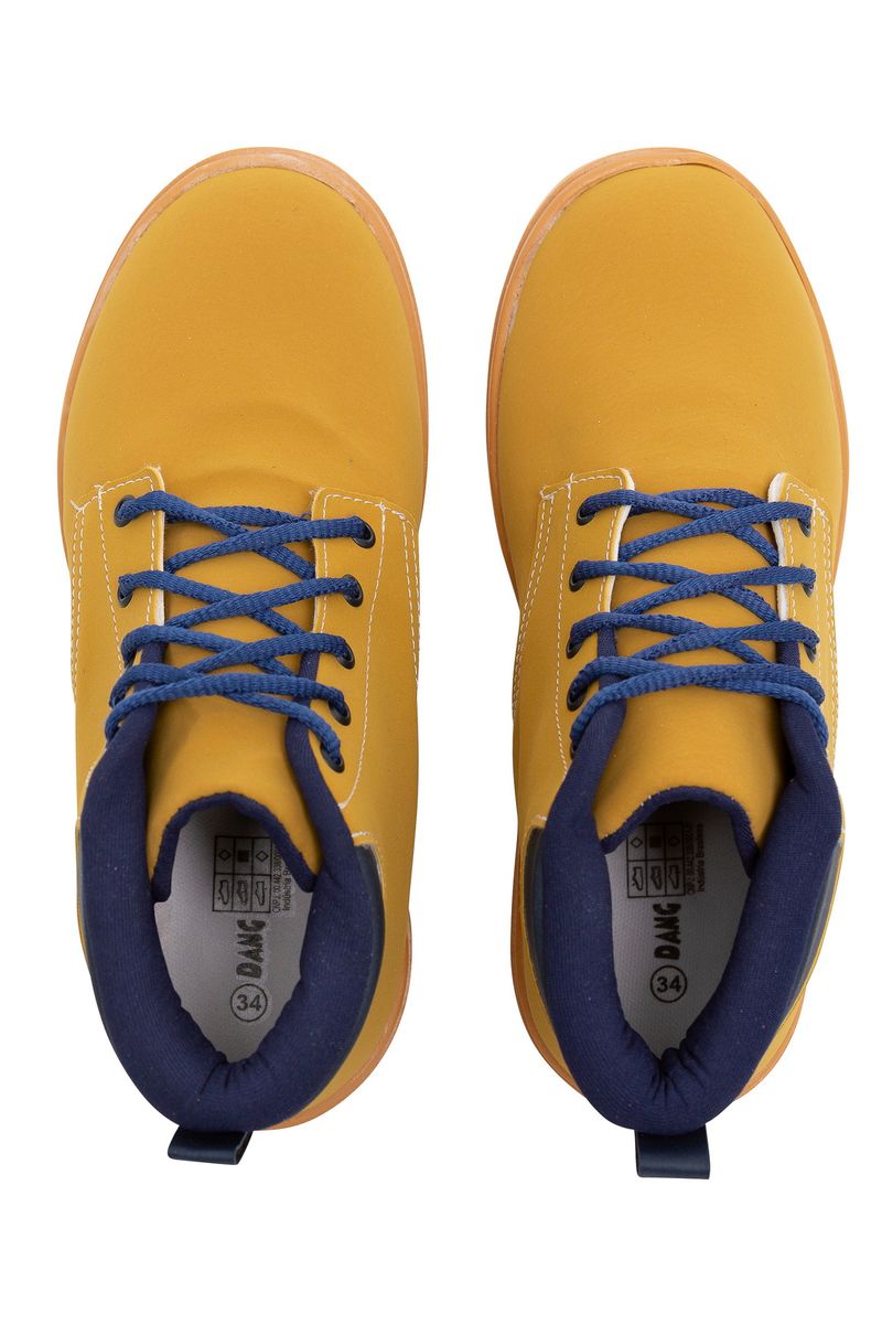 Bota juvenil tratada na cor mostarda, ideal para enfrentar os dias frios com conforto e estilo.