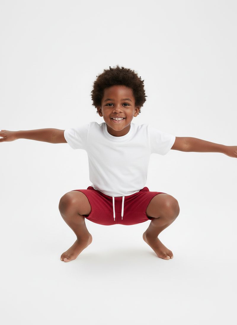 Combine este shorts vermelho escuro com uma camiseta branca lisa para um visual clássico e confortável. Para um toque mais despojado, adicione um tênis casual e uma blusa estampada. Em dias mais amenos, uma jaqueta leve completa o look com estilo. Versátil para criar diversas combinações de roupas infantis.
