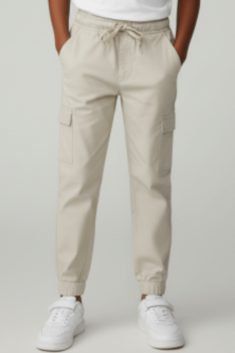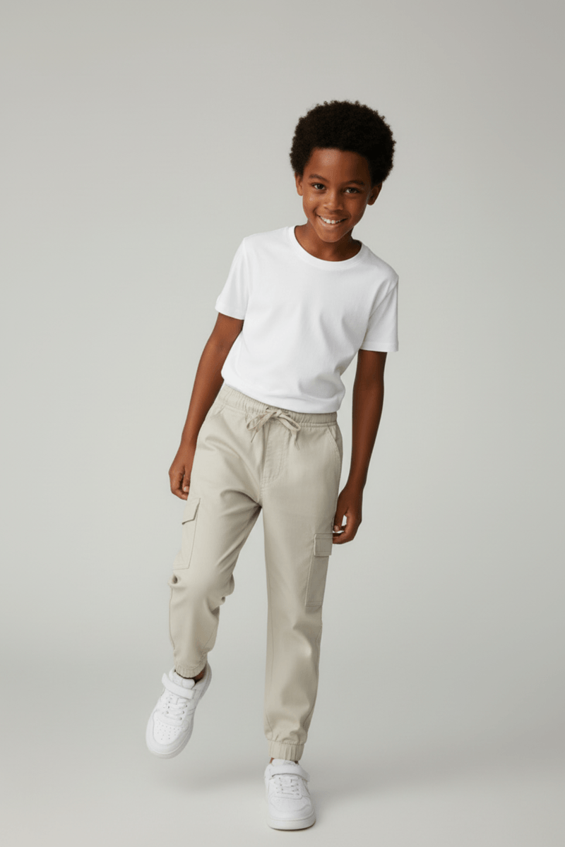A Calça Infantil Cargo Caedu em sarja 100% algodão oferece conforto e estilo para os pequenos. Com cós elástico ajustável e bolsos cargo práticos, é a roupa ideal para aventuras diárias. Encontre na Lojas Caedu.