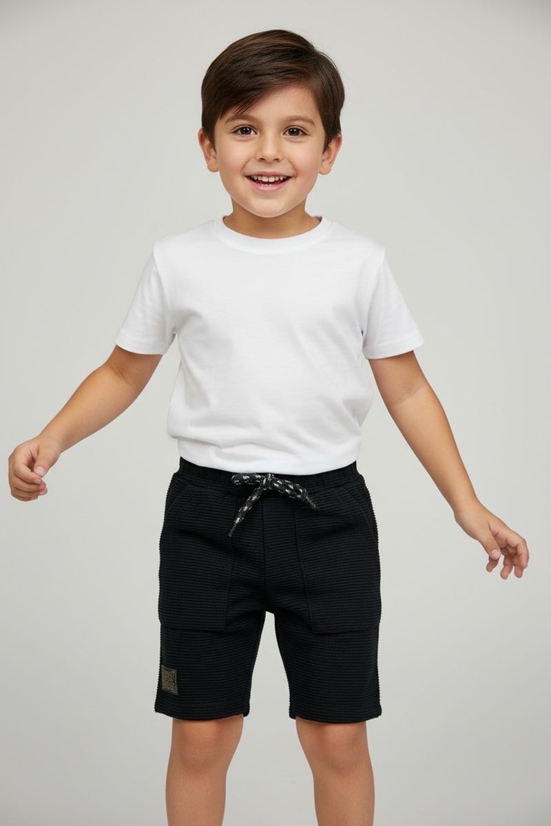 O Short Infantil Menino Preto Texturizado da Caedu oferece conforto e estilo para os pequenos. Feito em moletinho 100% poliéster com cós elástico e cadarço ajustável, garante caimento perfeito. Uma roupa Caedu essencial para a moda infantil, com melhor preço e qualidade.