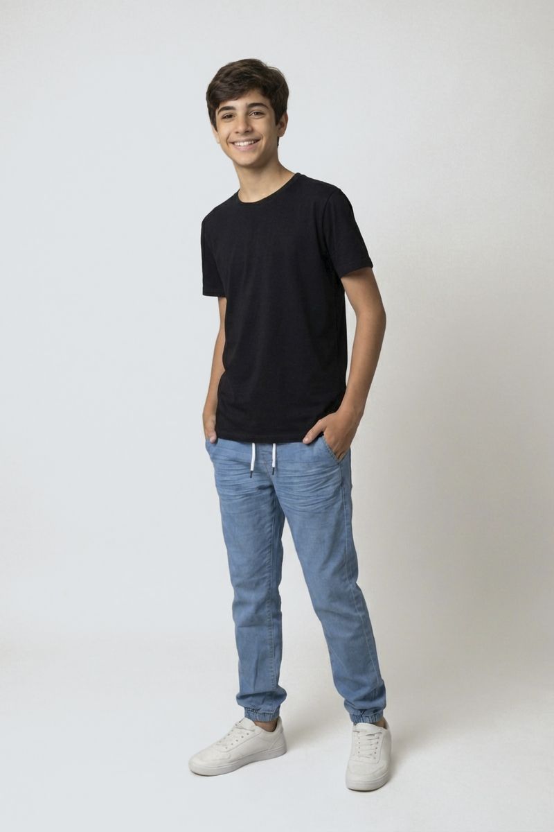 Perfeita para diversas ocasiões, a Calça Jeans Jogger Juvenil se adapta ao ritmo do seu dia. Ideal para passeios no parque, encontros com amigos, idas ao cinema ou até mesmo para relaxar em casa com muito estilo e conforto.
