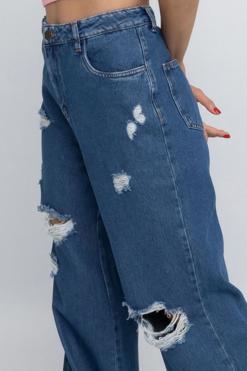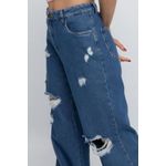 Calça Feminina Wide Leg Destroyed Jeans Escuro
