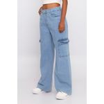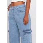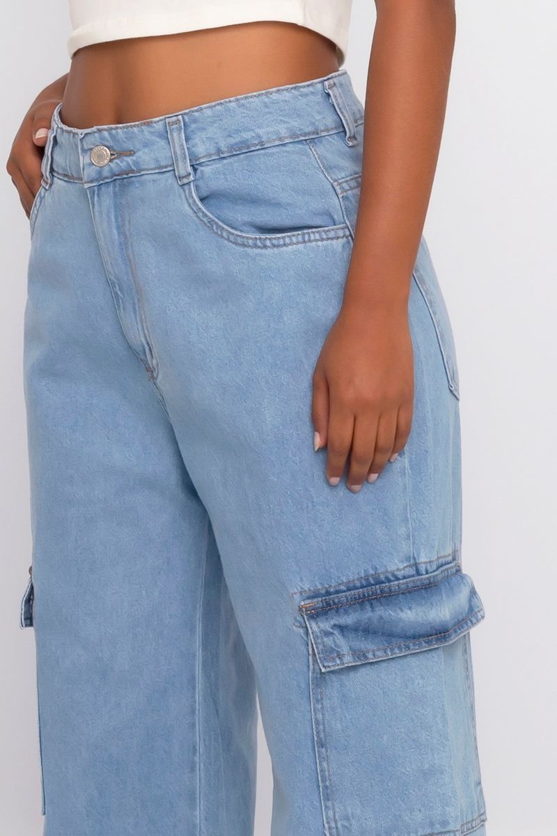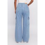 Calça Jeans Feminina Wide Leg Cargo Azul Claro