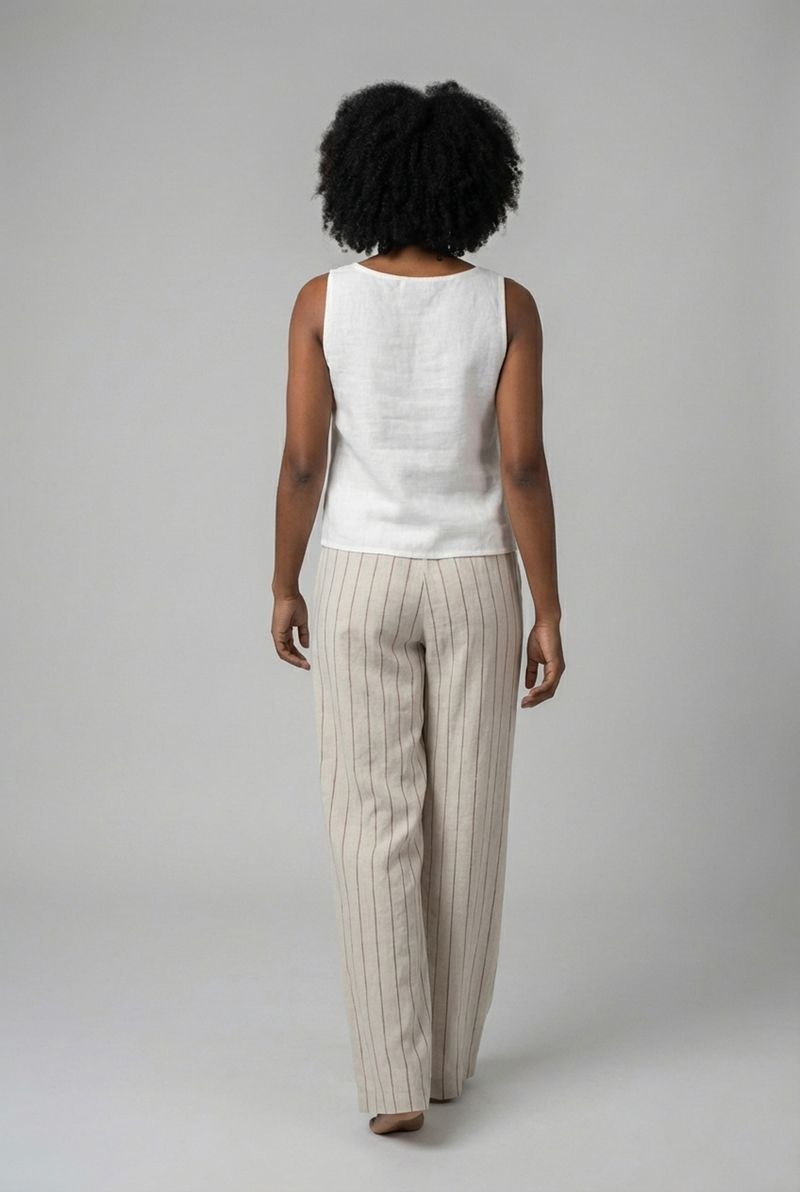 Combine sua calça pantalona risca de giz com regatas básicas ou blusas leves para um look casual chic. Para um toque mais despojado, aposte em um cropped e tênis. Complete o visual com sandálias de salto baixo ou rasteirinhas e uma jaqueta jeans para um estilo versátil e moderno em qualquer ocasião, realçando sua moda Caedu.