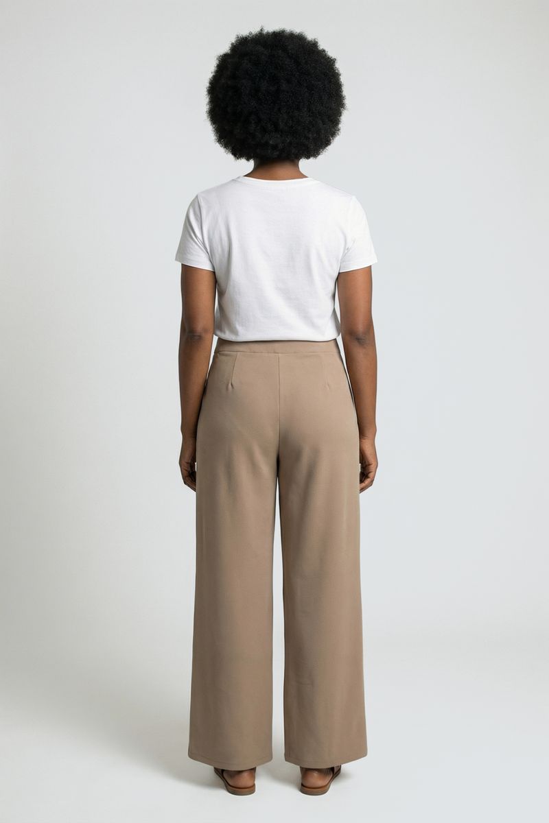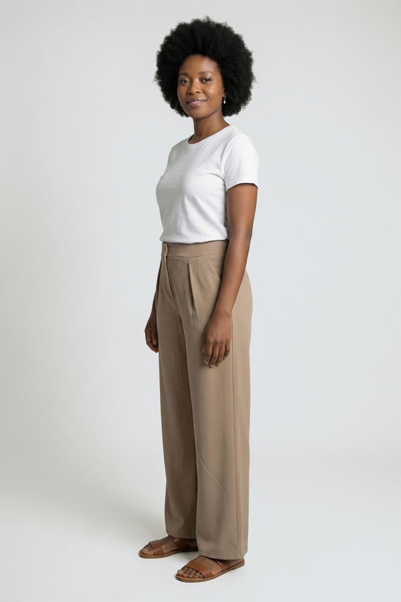 Combine sua Calça Pantalona Bege com uma camiseta branca básica para um visual despojado, ou uma blusa de seda para um toque mais sofisticado. Nos pés, sandálias rasteirinhas marrons ou saltos altos complementam o look. Adicione um blazer para um estilo elegante ou uma jaqueta jeans para um toque casual.