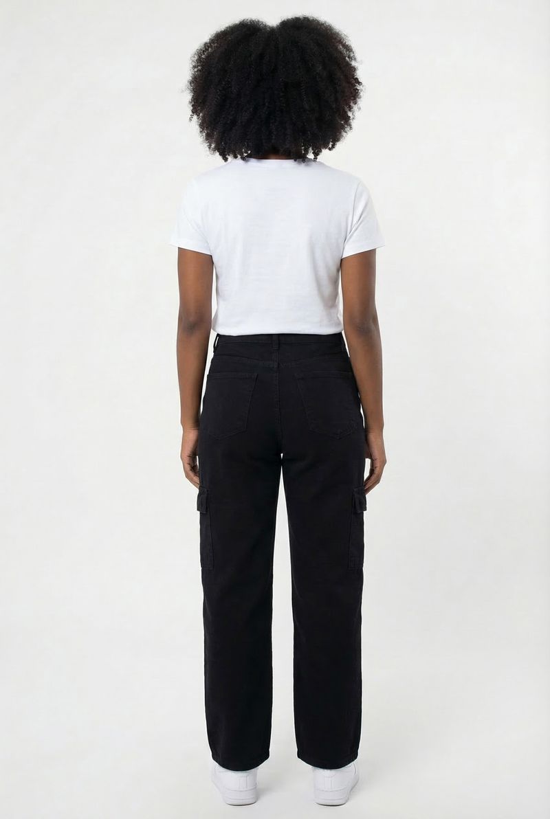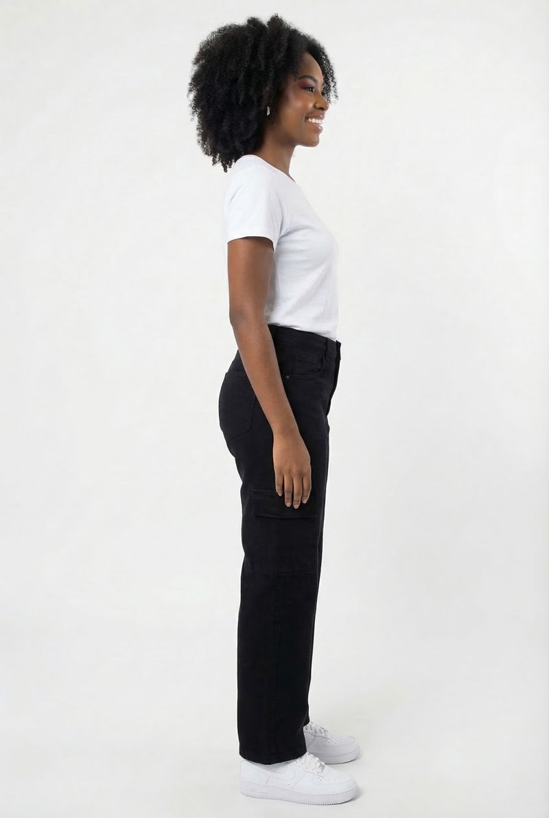 A Calça Jeans Cargo Wide Leg Feminina Preta Caedu é a peça-chave da nova coleção de outono inverno. Com jeans preto médio, modelagem wide leg e estilo cargo com bolsos laterais e frontais, ela garante conforto e estilo para a mulher moderna.
