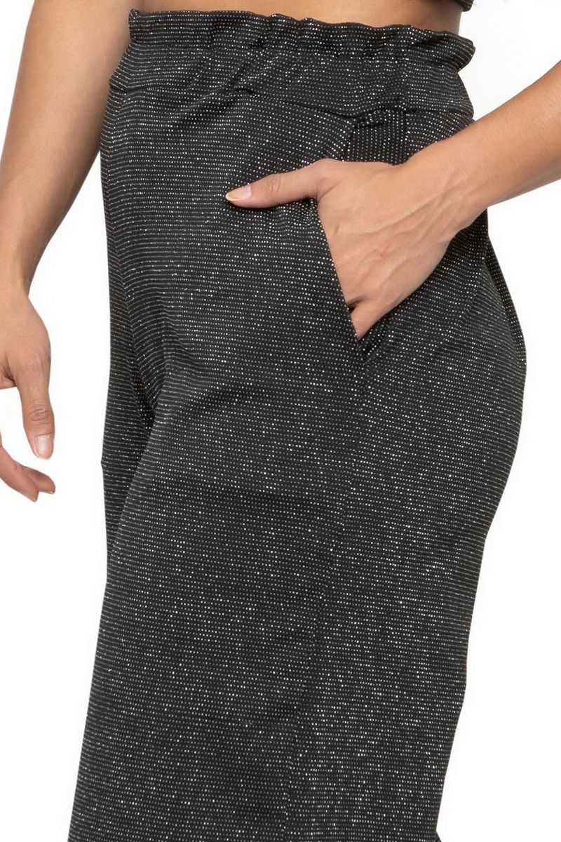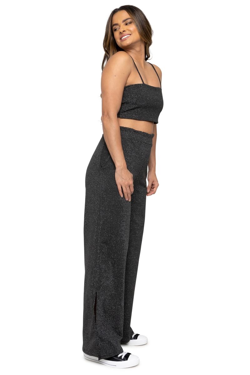 Calça pantalona com lurex, fio metalizado na trama do tecido que destaca por seu brilho, além de contar com modelagem soltinha, que oferecem um ar despojado e ao mesmo tempo arrumadinho à quem veste. Perfeito para compor looks estilosos, tanto para o dia quanto para a noite.